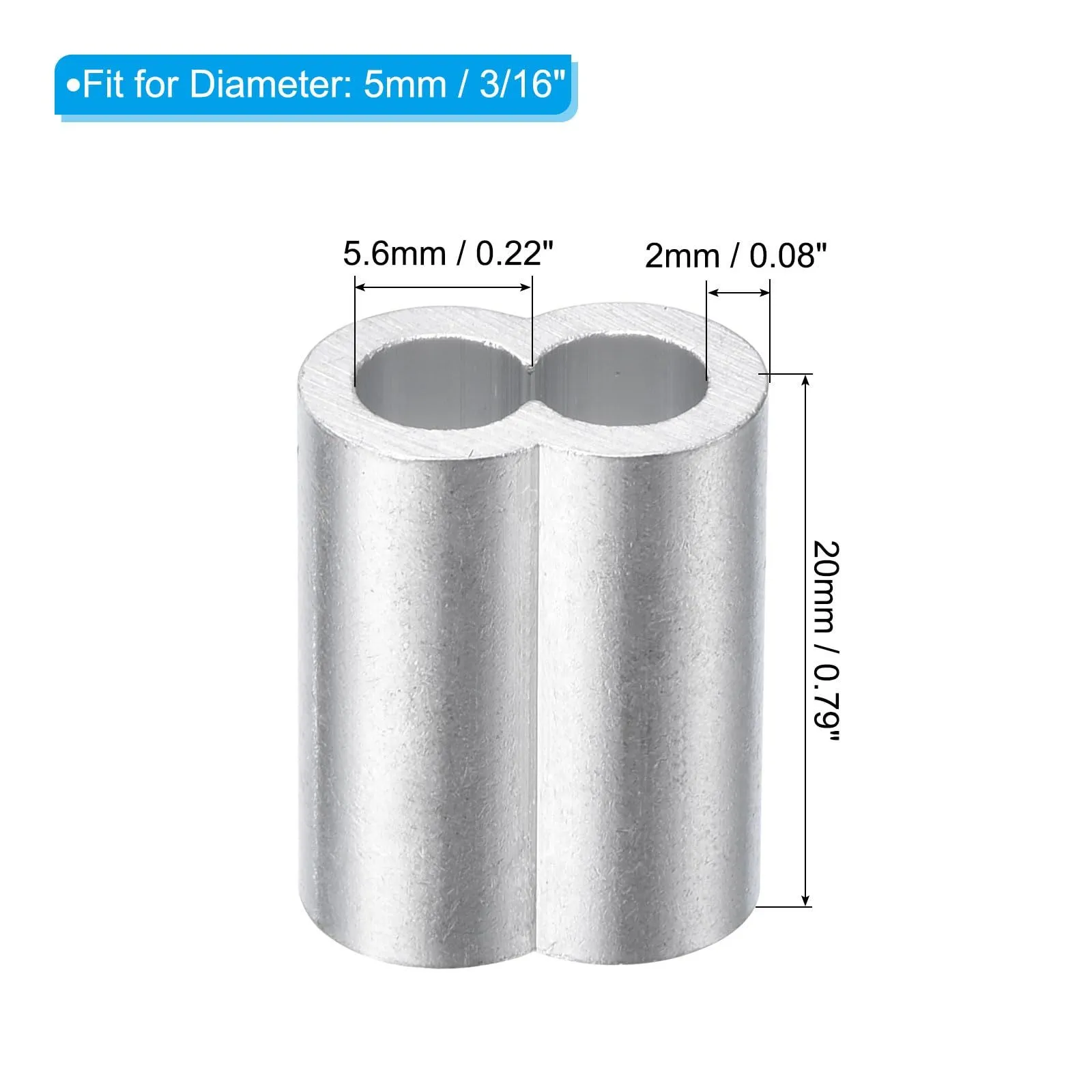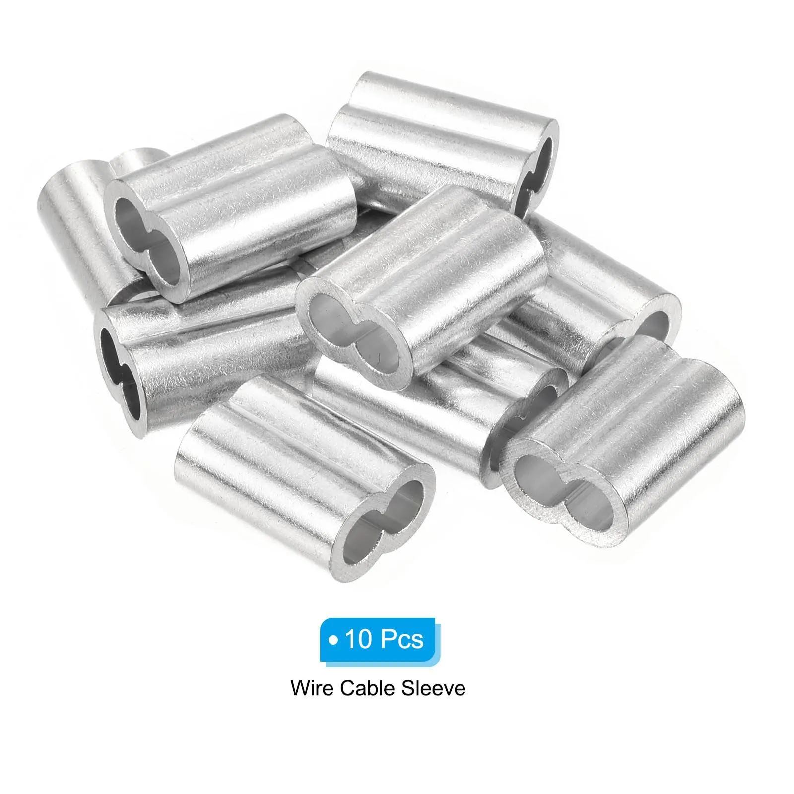uxcell アルミ圧着ルー プスリーブ ダブルフェルール 5 mm ワイヤーロープケーブル ラインエンド用 シルバー 10個