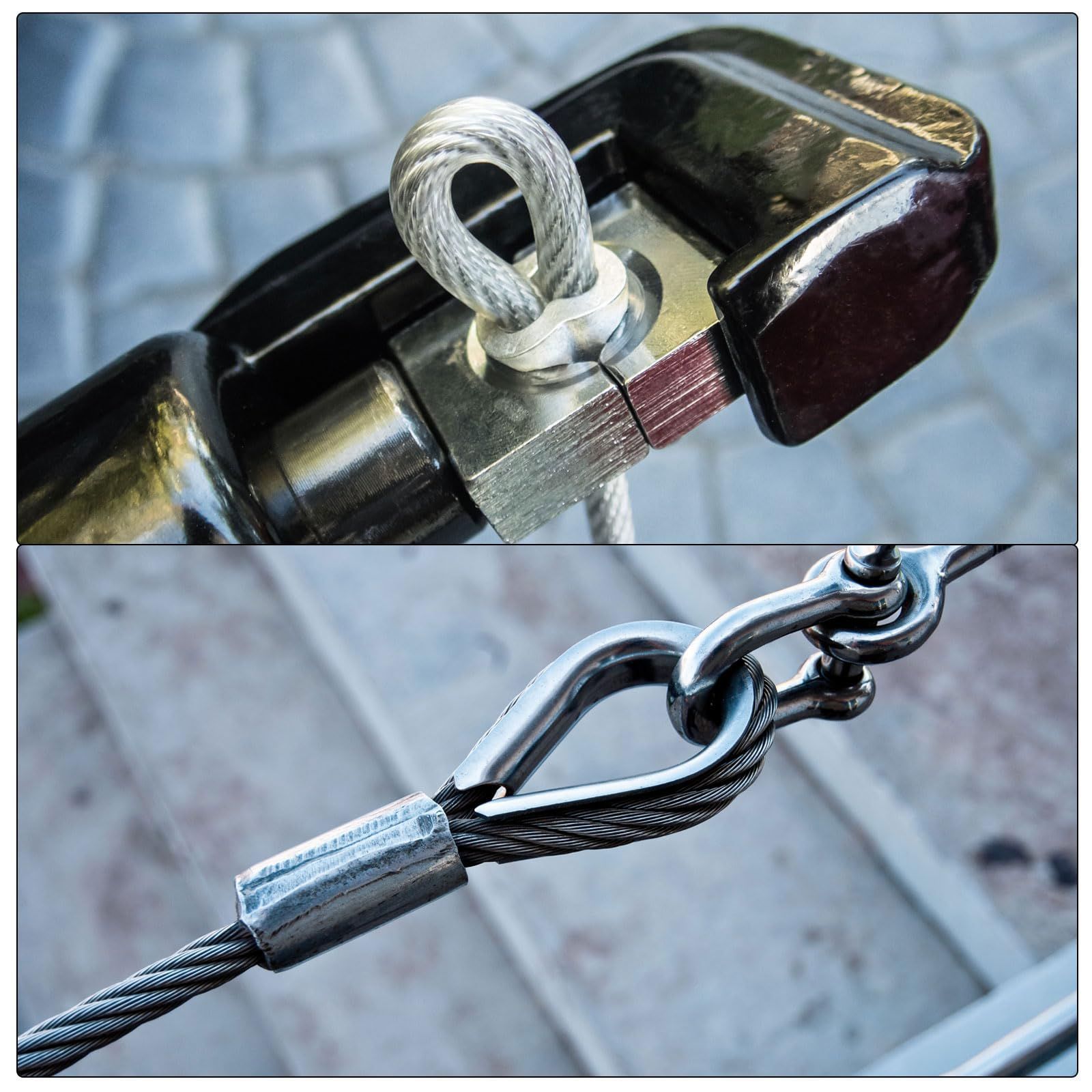 スリーブをワイヤロープに圧着することにより、強力で信頼性の高い接続が得られ、滑りや剥離を防ぎます。