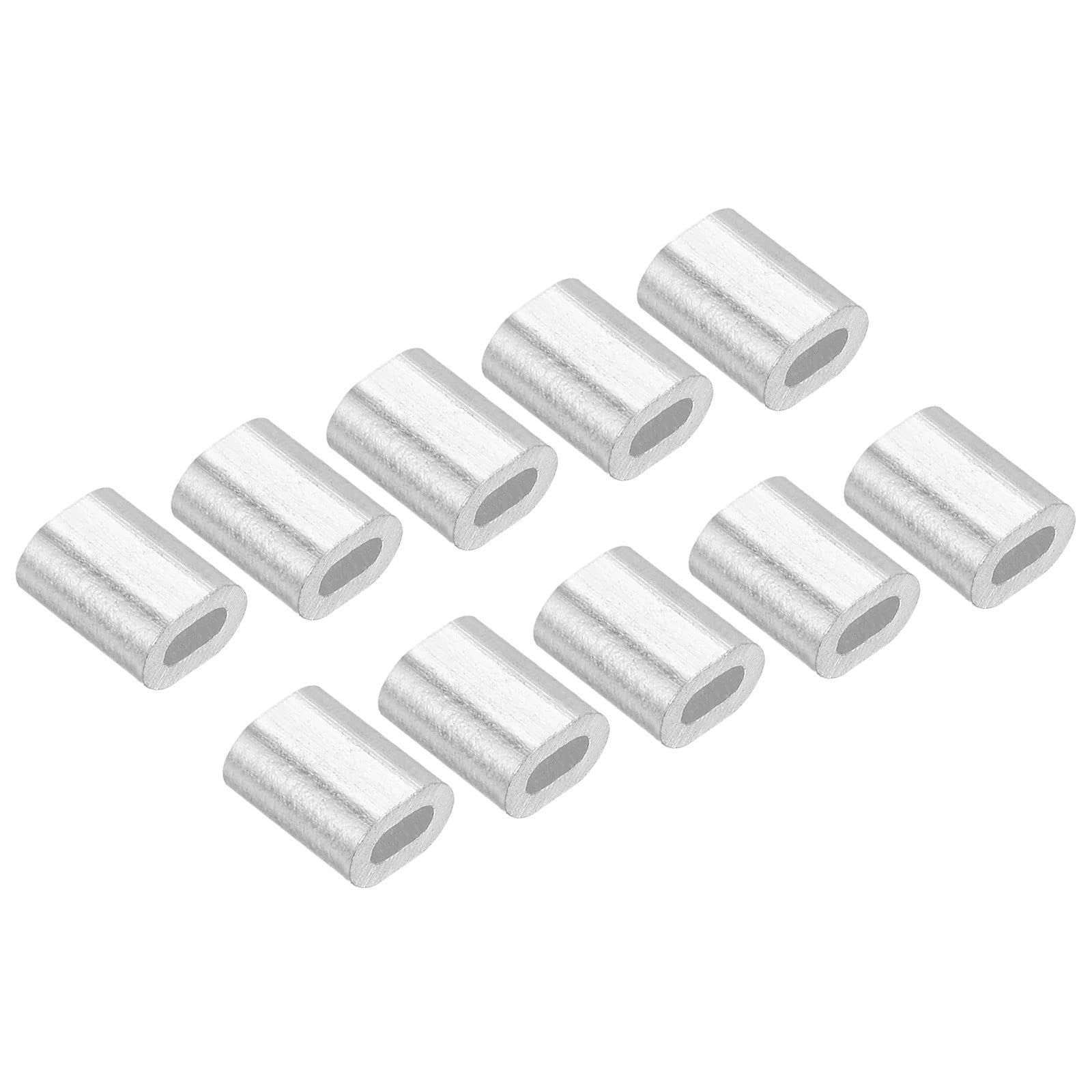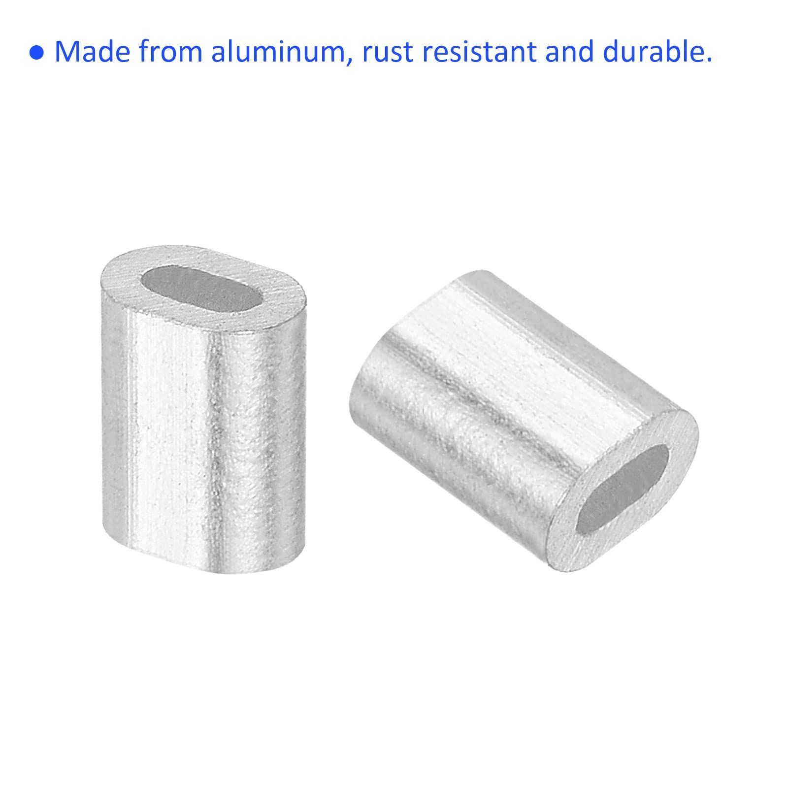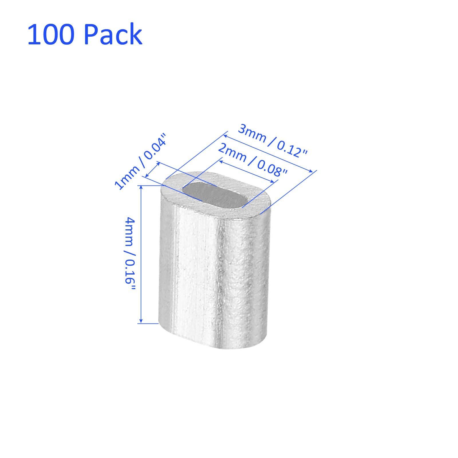 100 個 アルミニウム 圧着ループ スリーブ 楕円形 0.5mm ワイヤー ロープ ファスナー 庭のフェンスに適用 4x3 mm
