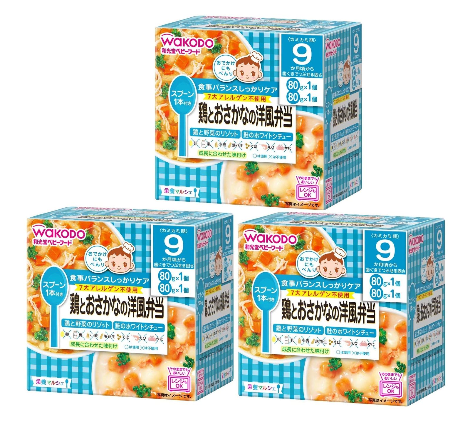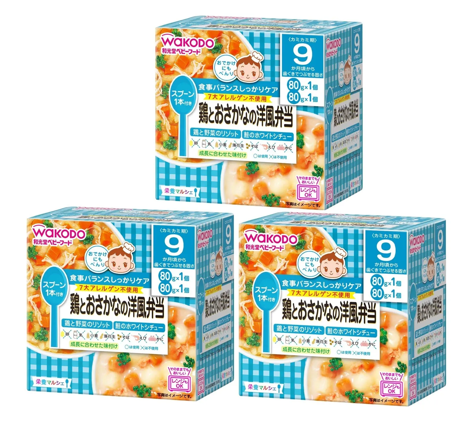 9か月頃から 「鶏と野菜のリゾット」と「鮭のホワイトシチュー」の詰め合わせです。7大アレルゲン不使用です。