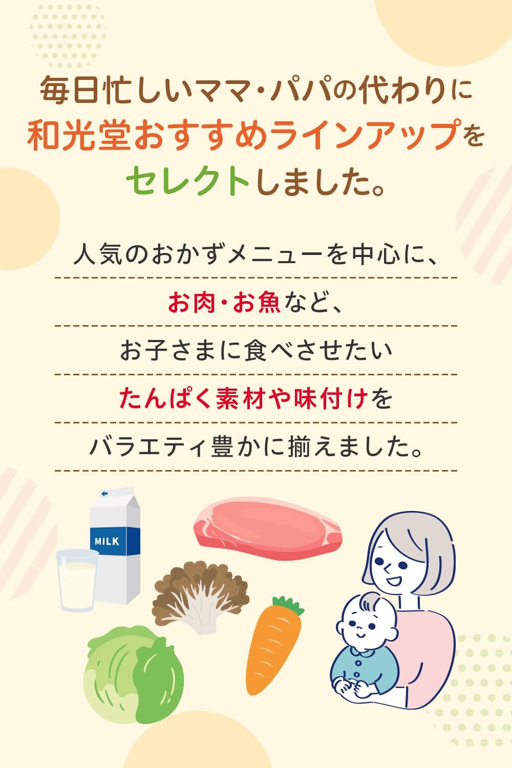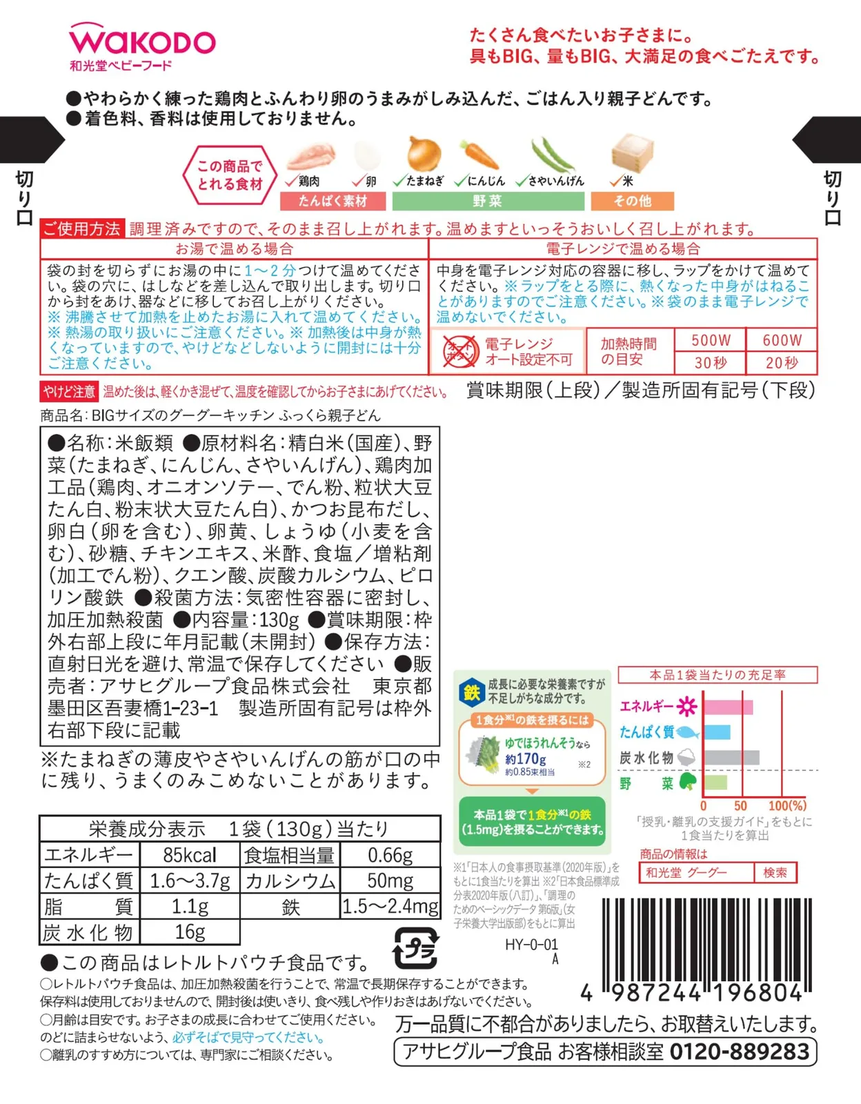 【商品特長】 ・やわらかく練った鶏肉とふんわり卵のうまみがしみ込んだ、ごはん入り親子どんです。 ・1食分の鉄入り。カルシウムも一緒に摂れ、離乳食で不足しがちな栄養を手軽にサポートできます。 ・着色料、香料は使用しておりません。