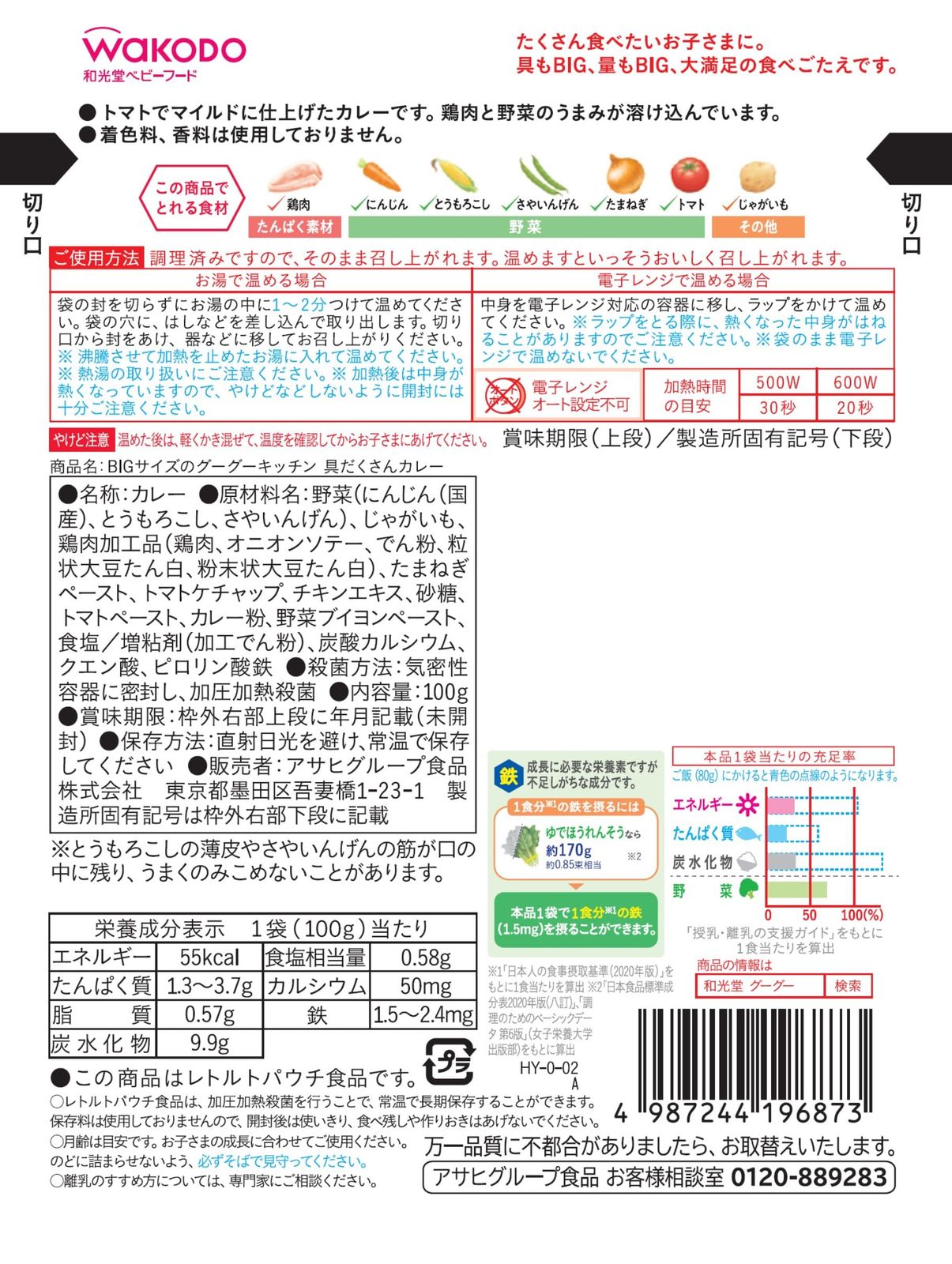 【和光堂】 BIGサイズのグーグーキッチン 具だくさんカレー 100g×6袋 [