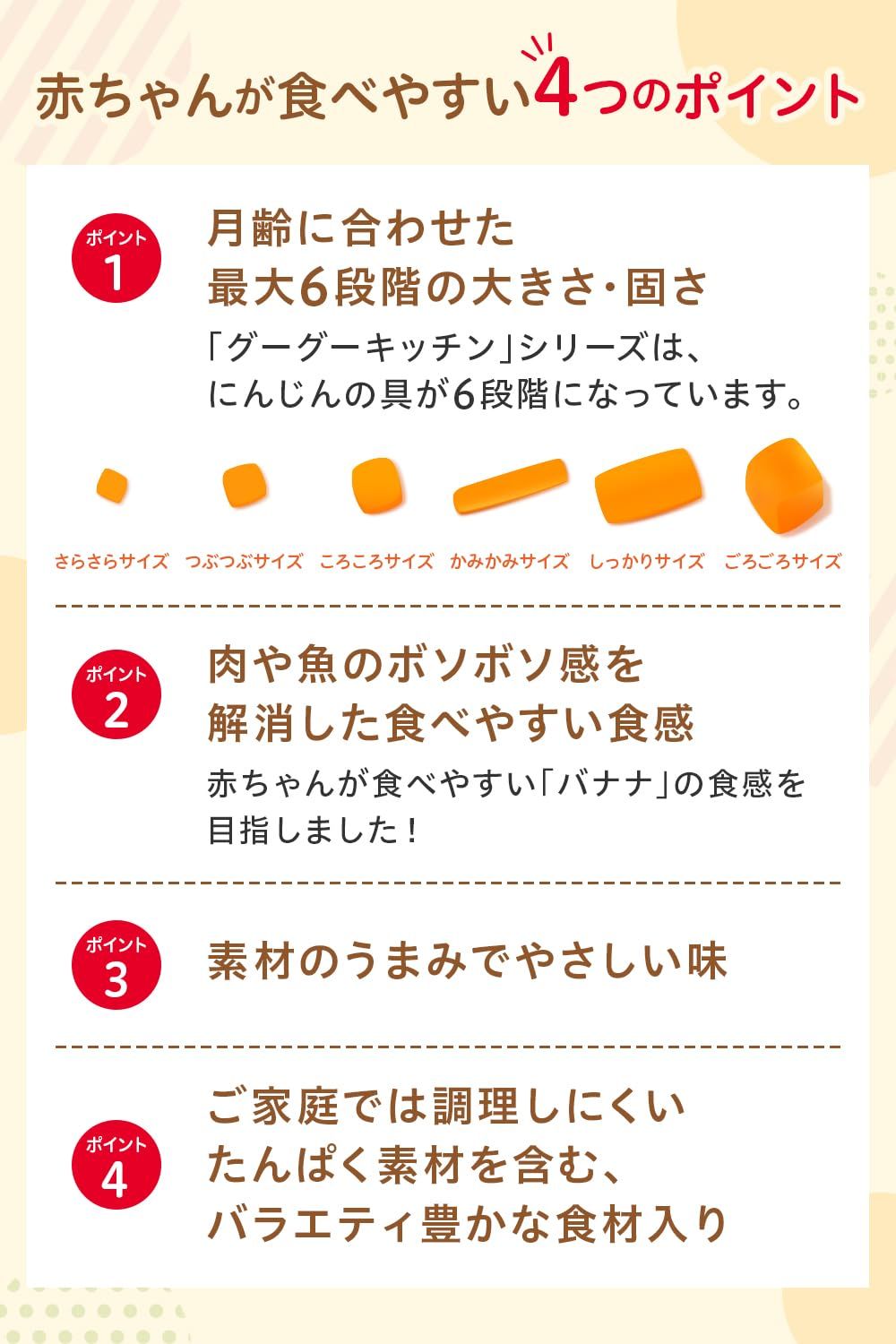 【商品特長】 ・鶏肉をふんわりやわらかく練って、2種のきのことレバーペーストを一緒に完熟トマトソースでじっくり煮込みました。 ・1食分の鉄入り。カルシウムも一緒に摂れ、離乳食で不足しがちな栄養を手軽にサポートできます。 ・着色料、香料は使用しておりません。