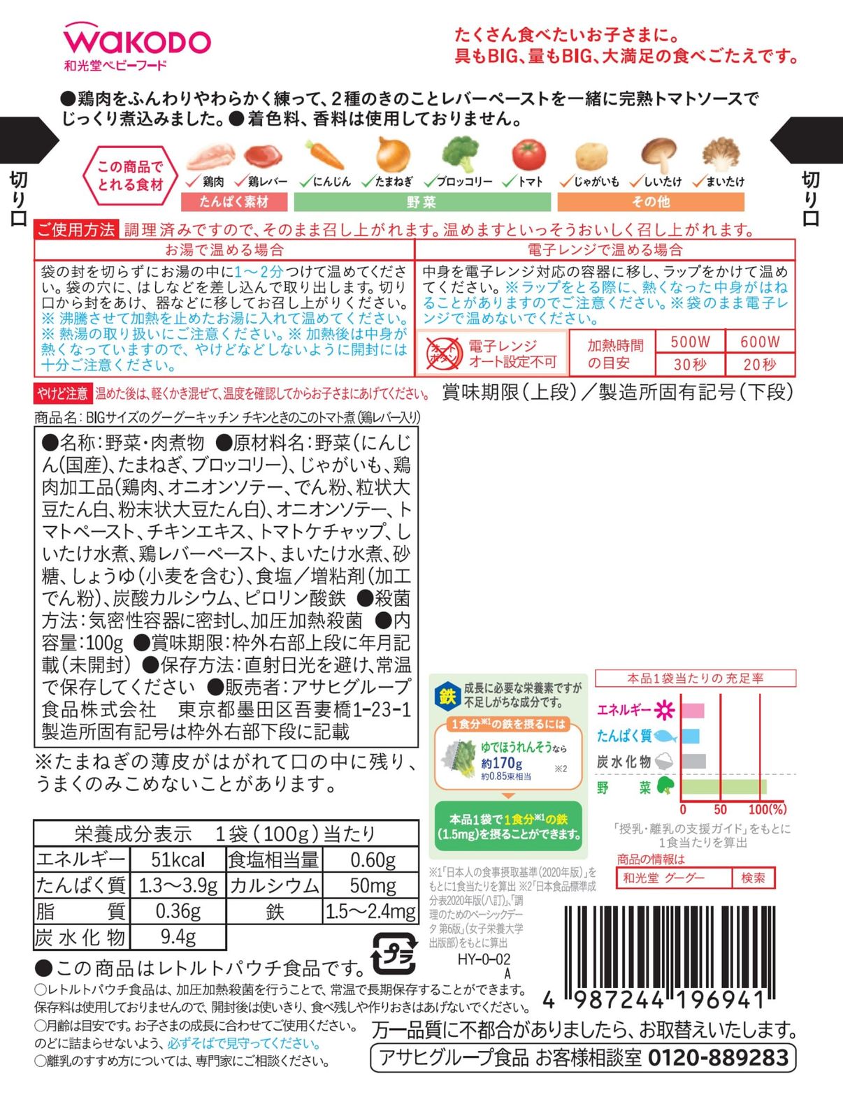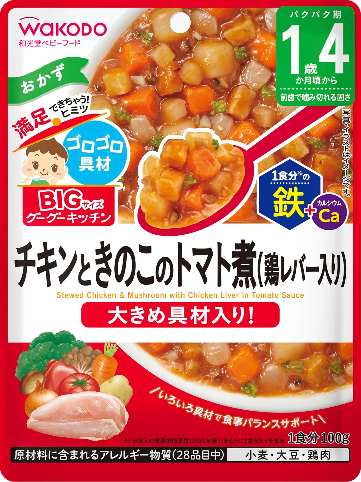 【和光堂】 BIGサイズのグーグーキッチン チキンときのこのトマト煮(鶏レバー入