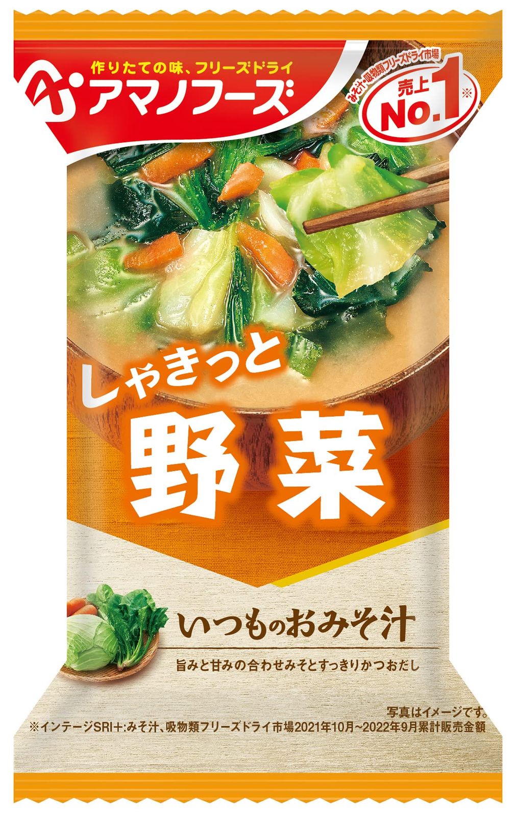 旨みと甘みの合わせみそと、すっきりかつおだしの、野菜のおみそ汁。キャベツ、ほうれん草、ねぎ、にんじん、わかめ、五種類の具材が楽しめます。「いつものおみそ汁」は、具材にあわせて最も相性の良いみそとだしを選んだ、具材のおいしさが引き立つこだわりのおみそ汁です。毎日でも食べ飽きないバラエティー豊かなおいしさをお楽しみ頂けます。