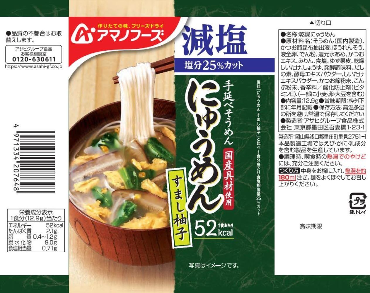 当社「にゅうめん すまし柚子」と比べ、1食当たり食塩相当量25%カット。