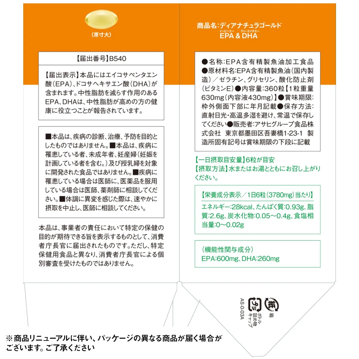 【機能性関与成分】EPA:600mg、DHA:260mg