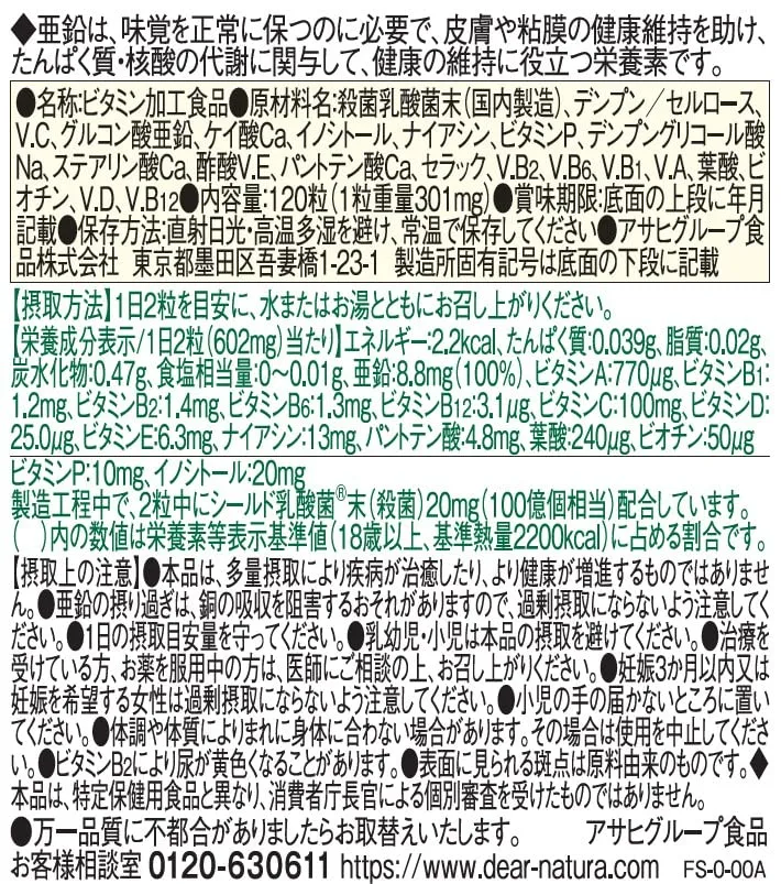 ▼本品には、ビタミンD、亜鉛、乳酸菌等が含まれています。 ▼栄養機能食品:亜鉛 ▼摂取方法:1日2粒を目安に、水またはお湯とともにお召し上がりください。 ※商品をご利用いただく際は、必ずお手元の商品の表示をご確認の上、ご使用ください。 ※食生活は、主食、主菜、副菜を基本に、食事のバランスを。 ※商品リニューアルに伴い、パッケージ及び原材料名の異なる商品が届く場合がございます。ご了承ください。