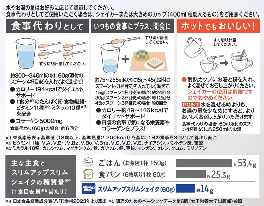 ▼1食おきかえプランの場合、60gを約300~340mlの水とよく混ぜてご使用ください。
