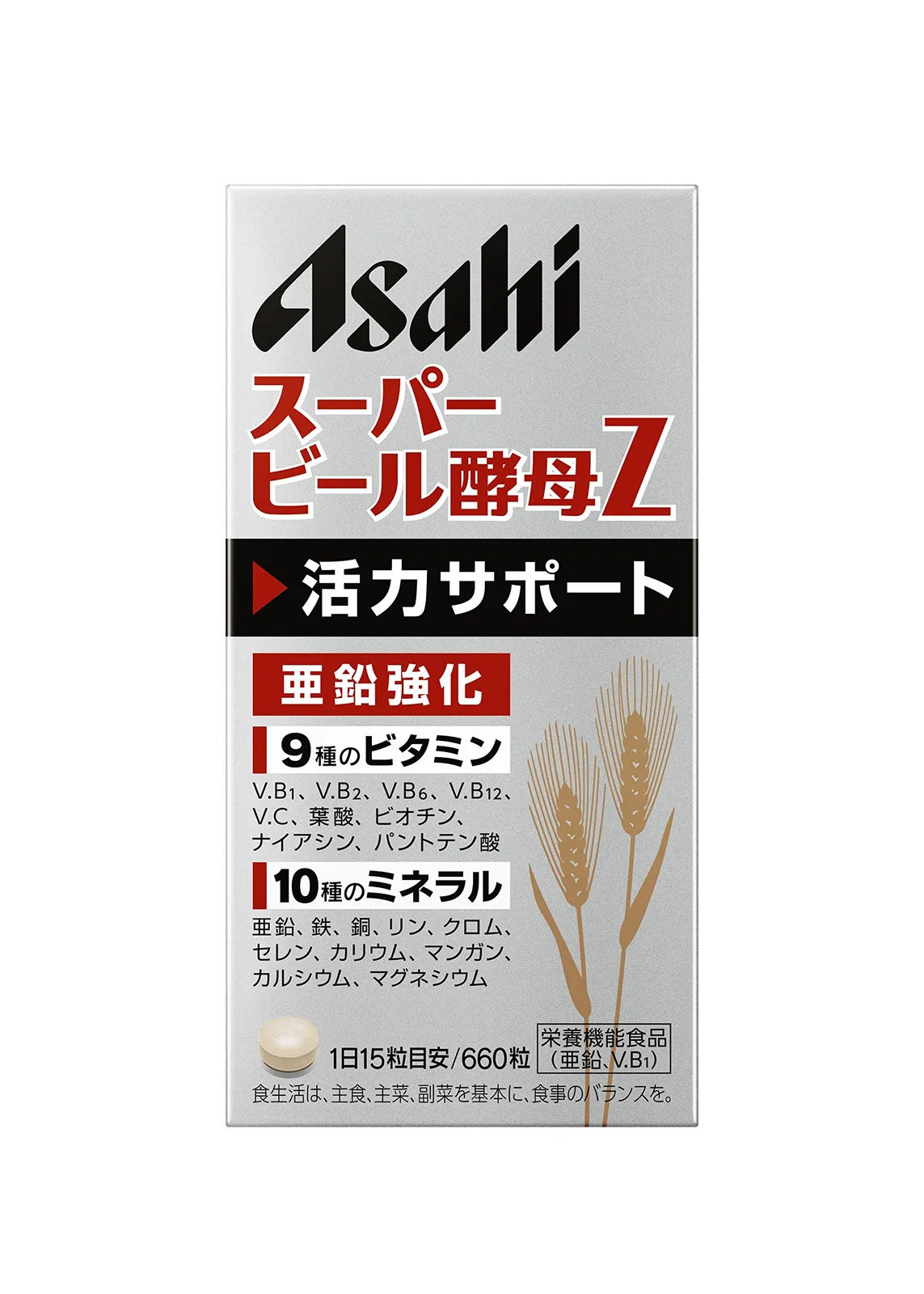 ●働き盛りの方に。★ビール酵母とは?ビールを醸造する時に麦芽に含まれるたくさんの栄養素を吸収します。だからビール酵母には、たんぱく質、ビタミンB群、ミネラル等体に欠かせない栄養素が含まれています。★スーパービール酵母Z。本品は、さらにビタミン(B1・B2・B6・B12・C)とミネラル(亜鉛・セレン・クロム・カルシウム)を栄養強化目的として追加配合しています。ビタミンやミネラルは体の構成成分として重要な役割を果たしており、健康の保持に密接な関係があります。