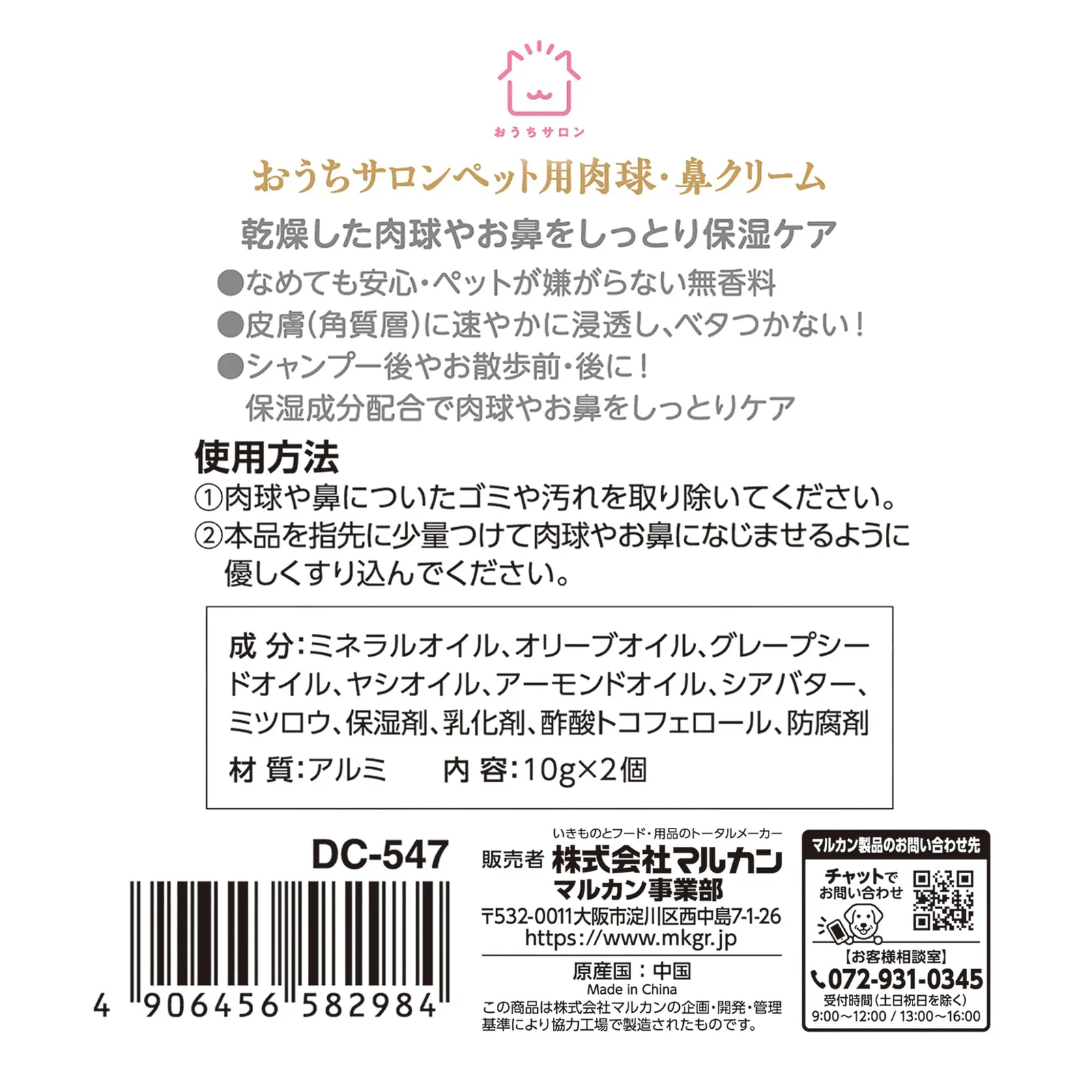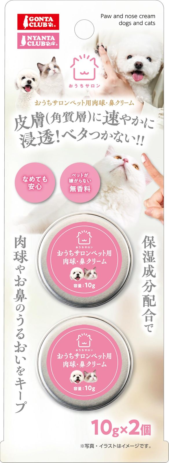 おうちサロン ペット用肉球・鼻クリーム 2個入り(10g×2個) 保湿成分配合で肉球やお鼻のうるおいをキープ 犬