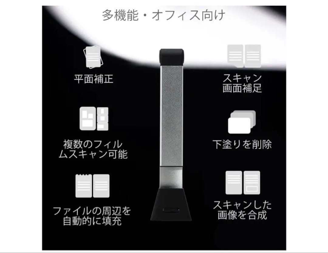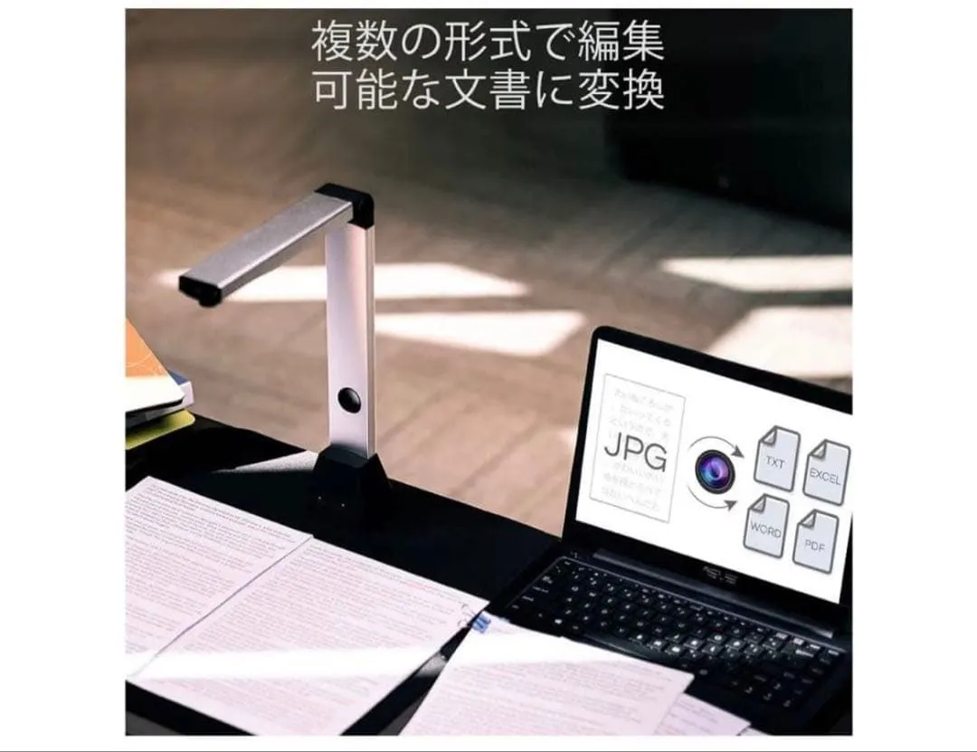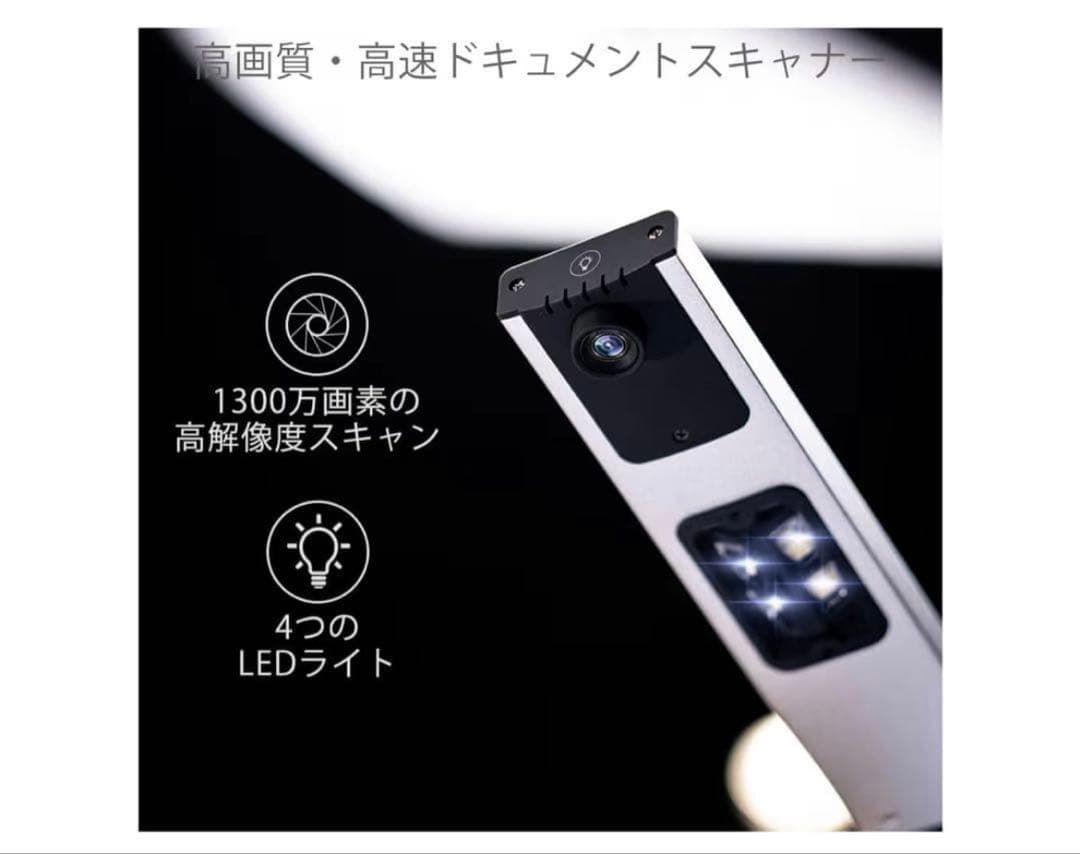 【使いやすい】スタンドスキャナーは4基のLEDライトを内蔵し、3段階の明るさ調整が可能。暗所でも均一な照明を実現し、書画カメラとして使用する際も良好な環境を提供します。卓上スキャナーの自動補正機能により、ページの歪みや傾きを補正し、良好な画質を維持。