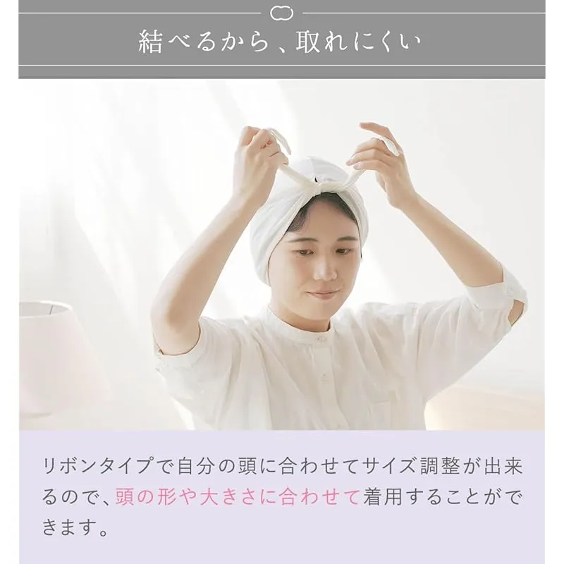 【リボンタイプで調節しやすい】リボンタイプで自分の頭に合わせてサイズ調節ができるので、頭の締め付けを防ぎ、寝返りの際にも脱げにくくなっています。