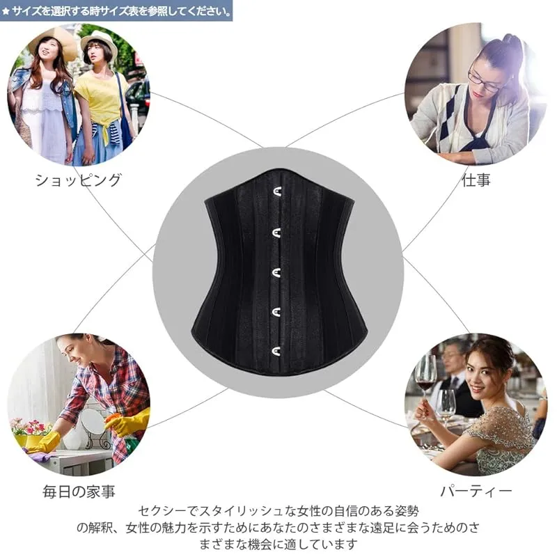 Burvogueレディースコルセットブランド:24本スパイラルスチールと 2つ 鋼板。堅すぎずしなやかに曲がり、ウエストのくびれラインを美しく演出します。紐の調節具合で、お好きなくびれ具合に調整可能。 スチールの骨が折れているかどうかが心配な場合は、磁石でテストできます。 ヨガ、産後の腹部コルセットなどに使用できます。