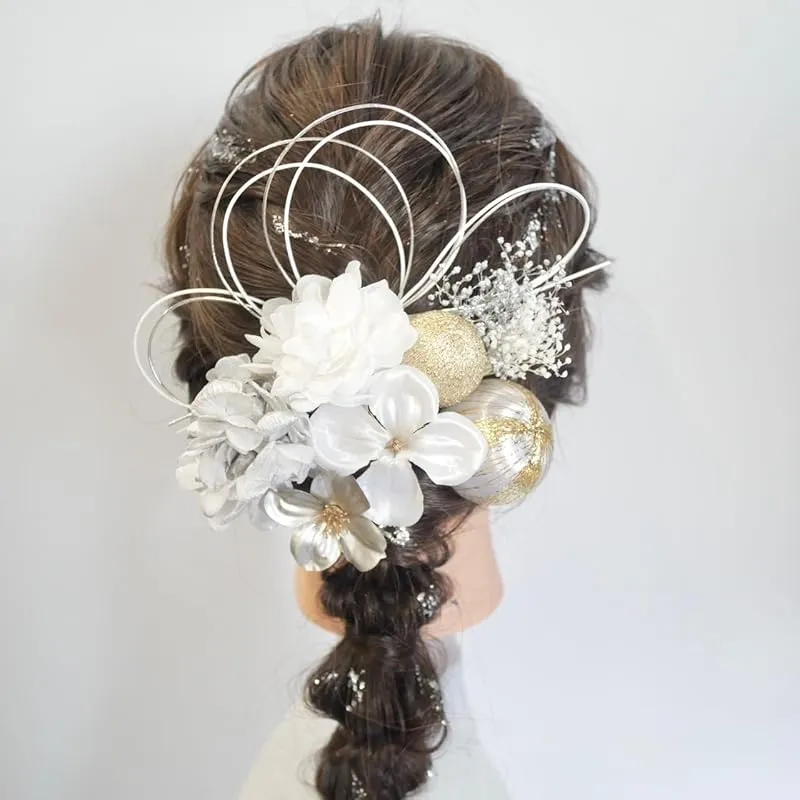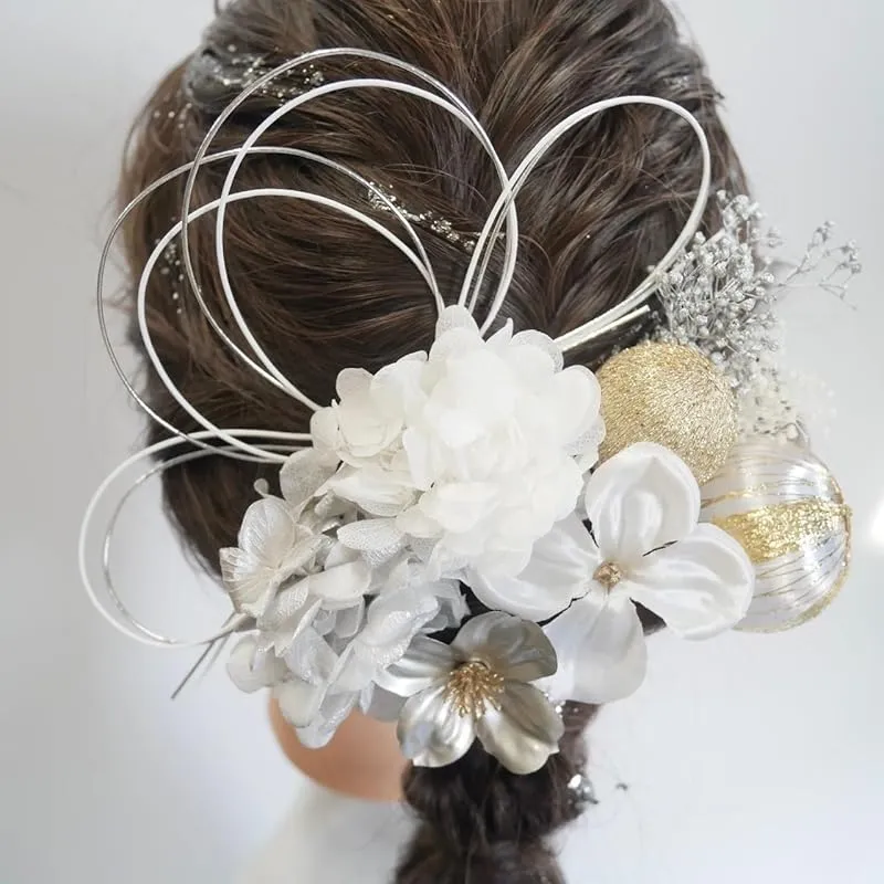 商品名:[Lomeri] ロメリ 水引アレンジの髪飾り ドライフラワー 成人式 卒業式 結婚式 袴 A205 (白×シルバー)