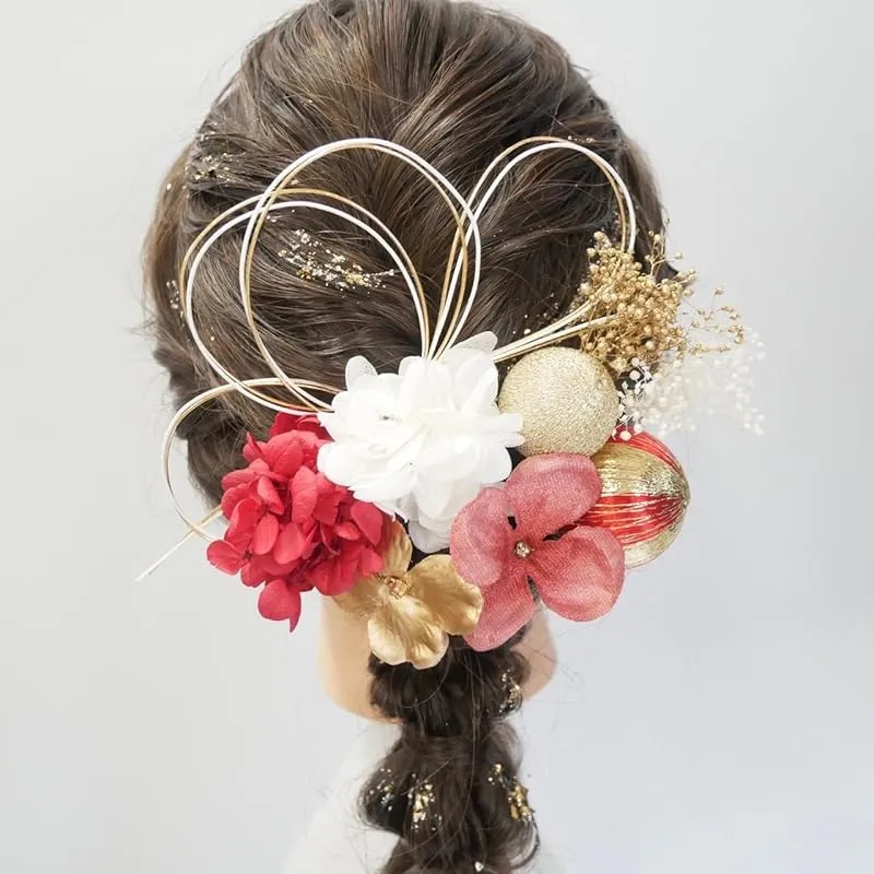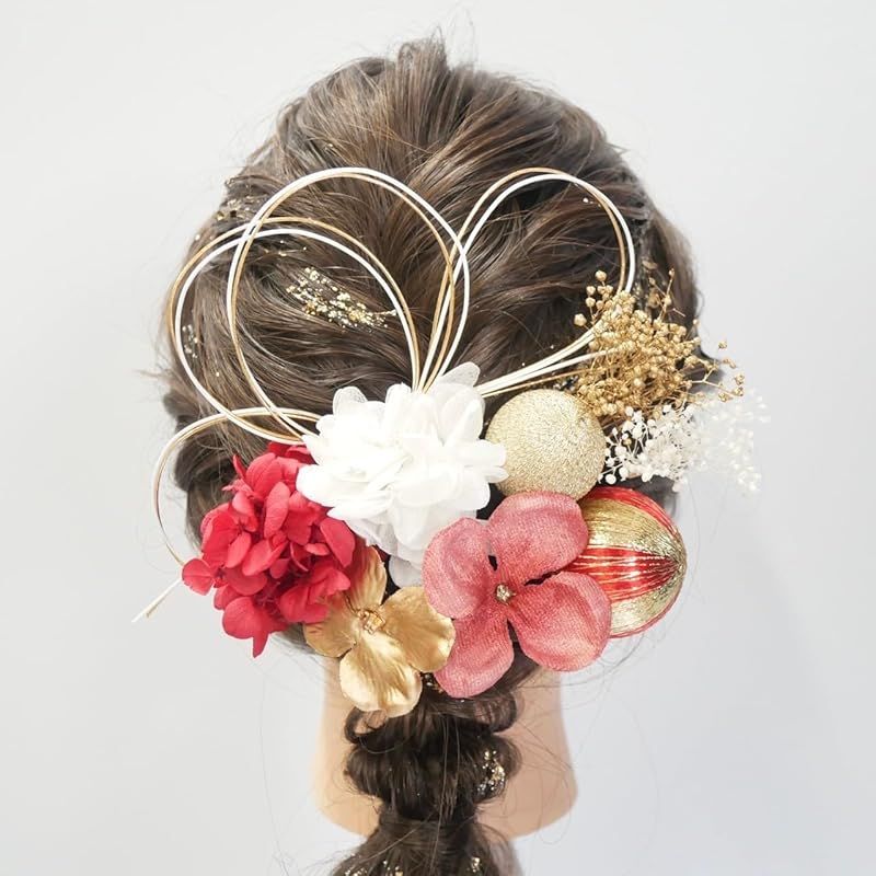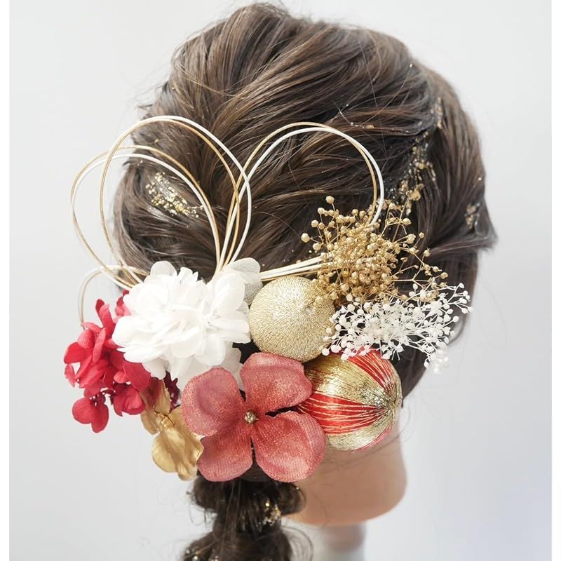 商品名:[Lomeri] ロメリ 水引アレンジの髪飾り ドライフラワー 成人式 卒業式 結婚式 袴 A206 (白×赤)