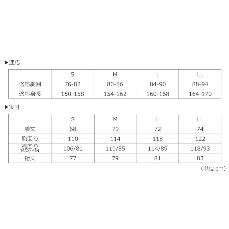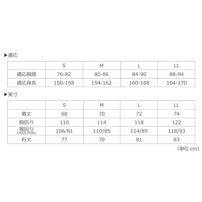 【サイズ】S(胸囲76?82cm/身長150?158cm),M(胸囲80?86cm/身長154?162cm),L(胸囲84?90cm/身長160?168cm),LL(胸囲88?94cm/身長164?170cm)