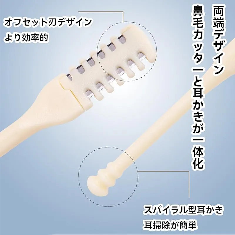 【多機能】これは多機能な清掃ツールで、鼻毛切りとして鼻毛を整えるだけでなく、反対側は耳かきとしても使用できます。三環螺旋デザインは頑固な耳垢に対処し、二つの役割を果たします。