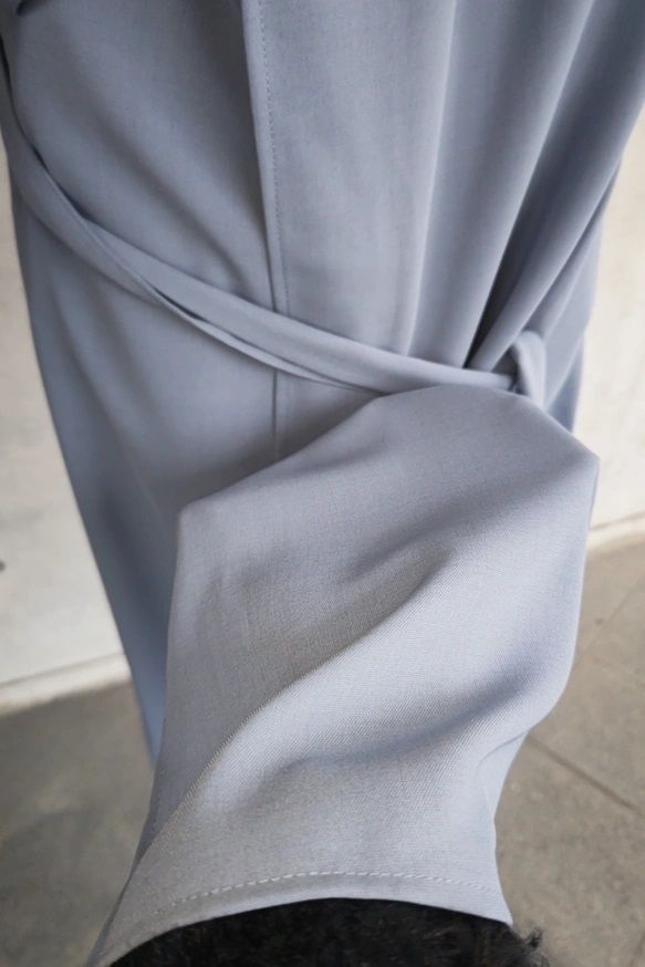 ■美しい佇まい:羽織ってウエストリボンを結ぶだけの「合わせ」のデザイン。お洋服の上からでも着物のような端正なシルエットを演出します。