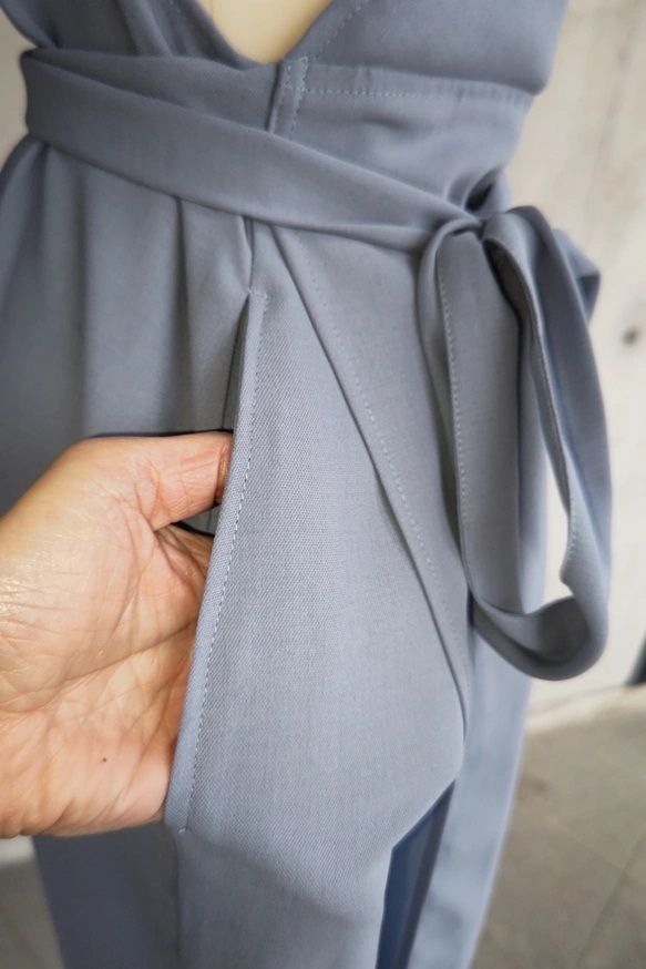 ■茶道に特化したディテール:胸当てポケット、両脇ポケット(懐の代わりとしても重宝)、体型に合わせてフィットするウエストリボン。