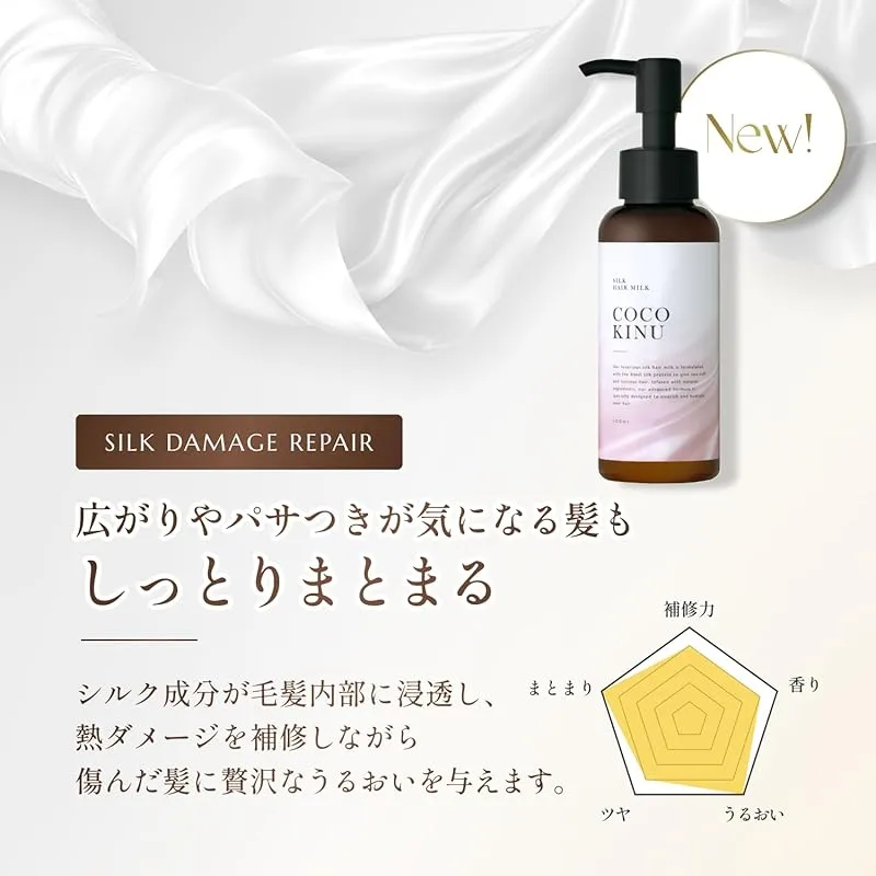 商品名:ココキヌ (COCO KINU) ヘアミルク 洗い流さないトリートメント 100mL ダメージ補修 シルキーサボンの香り (単品)