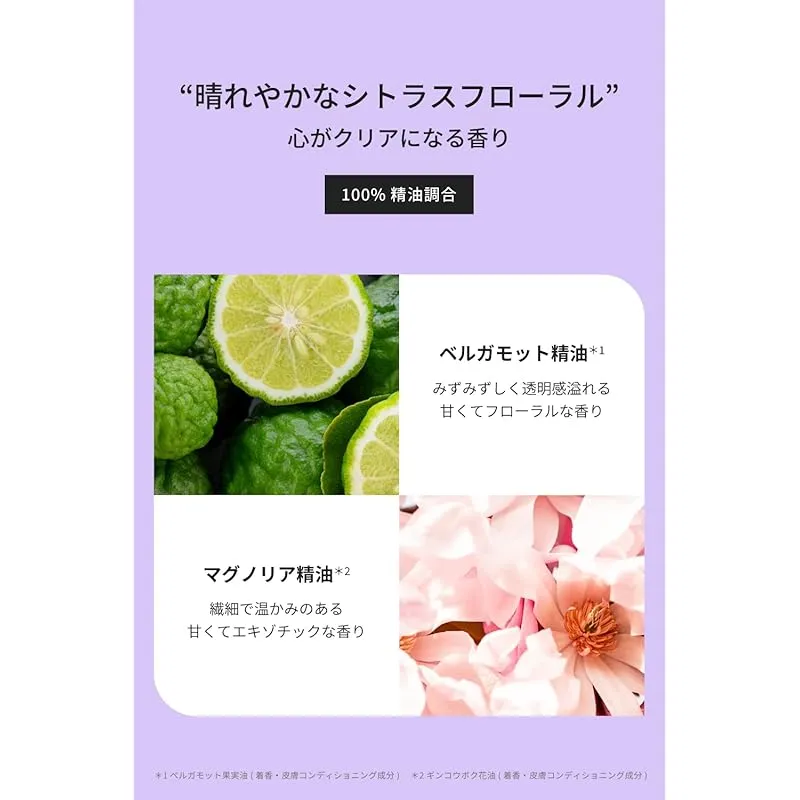 【心がクリアになる100%精油のアロマ】晴れやかなシトラスフローラル調の香り (ベルガモット精油*2 & マグノリア精油*3)