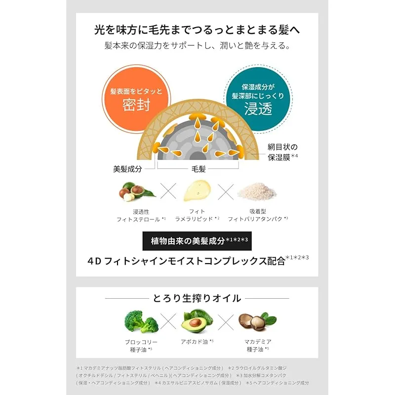 【成分のこだわり】植物由来の美容液成分*4 が髪の深部に浸透・保湿、毛先までうるりキラ髪を追求。とろり生搾りオイル*5、99%天然由来成分・アミノ酸系洗浄成分・オーガニック・ノンシリコン・フリー処方*6