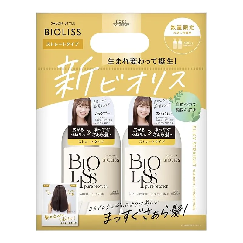 商品名:コーセーコスメポート ビオリス ピュアレタッチ お試し ポンプペアセット (うねさぁら) 400mL+400mL シャンプー トリートメント ストレートタイプ まっすぐ さらさら くせ毛 うねり