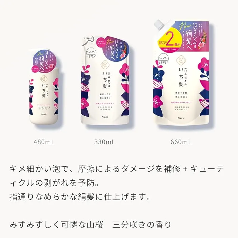 【日本中が待ちわびる"桜が花開く瞬間"に着目した香り】みずみずしく可憐な山桜の香り。 シャンプー [三分咲きの香り] ≫ コンディショナー [七分咲きの香り] ≫ トリートメント [満開の香り] と香りが徐々に花開いていきます。