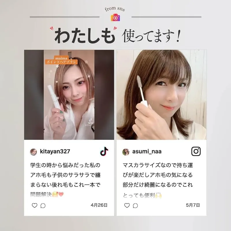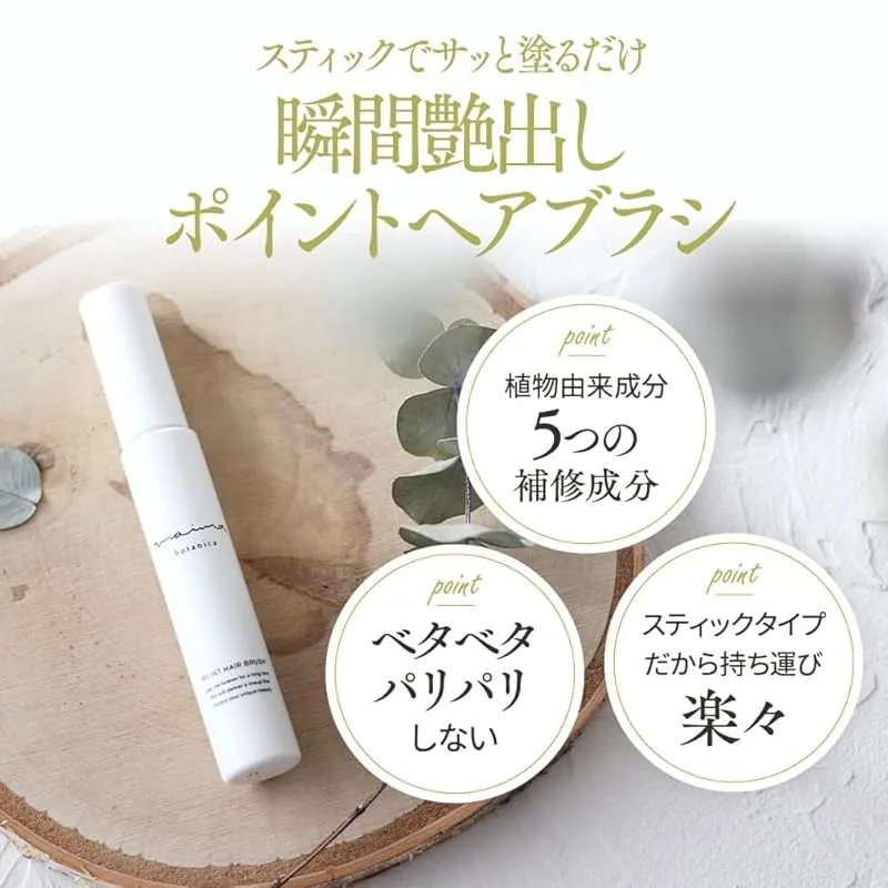 maima(マイマ)の ポイントヘアブラシ はヘアスタイリングに最適なアイテムです。髪のアホ毛を瞬時に直し、美しい艶を与え、まとまりのある美しい髪に仕上げます。また、ベタベタ感やパリパリ感を感じさせず、快適な使用感を提供します。さらに、無香料なので、香りに敏感な方にもおすすめです。5つの補修成分と植物由来の保湿成分を贅沢に配合しています。コンパクトなサイズは、持ち運びにも便利で、外出先でもいつでも美しい髪をキープできます。