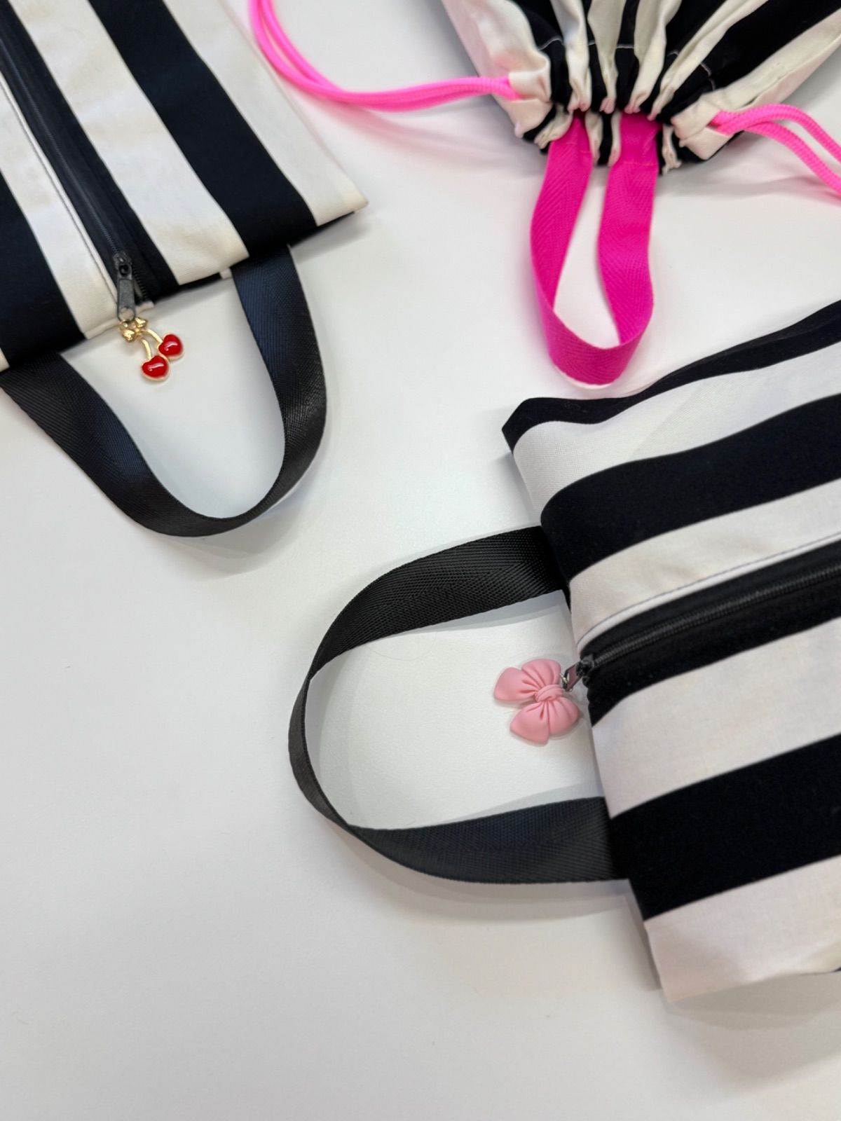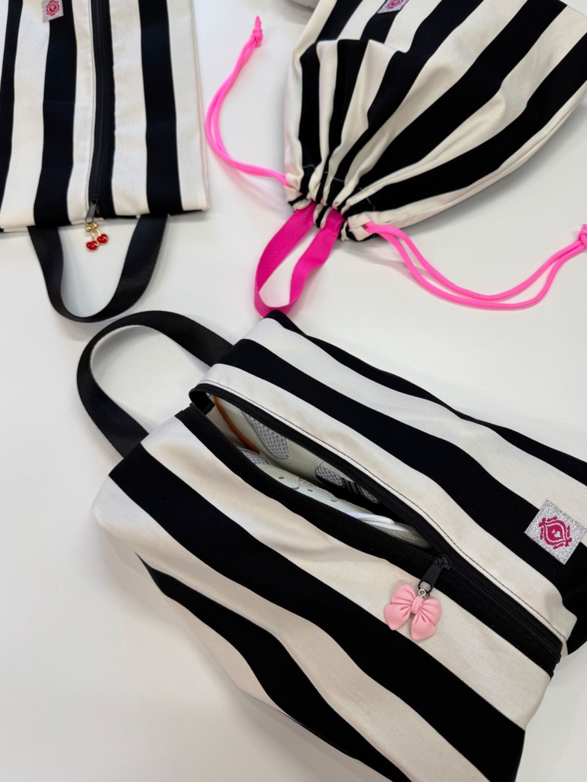サイズ25.0㎝まで対応、様々な靴をしっかり収納できます♪ - デザイン: ストライプ - 色: ブラック×ホワイト - 素材: 綿100% このファスナーシューズ入れは、開け閉めがスムーズなファスナー付き。収納力抜群で、旅行やジム、日常使いにも最適です! 便利なサイズ感で、靴以外の小物も収納可能! レジャーやオフィスにもぴったりです(^_−)−☆ 送料無料です♪ 店舗販売もしているため、売り切れの場合もあります。ご了承ください。