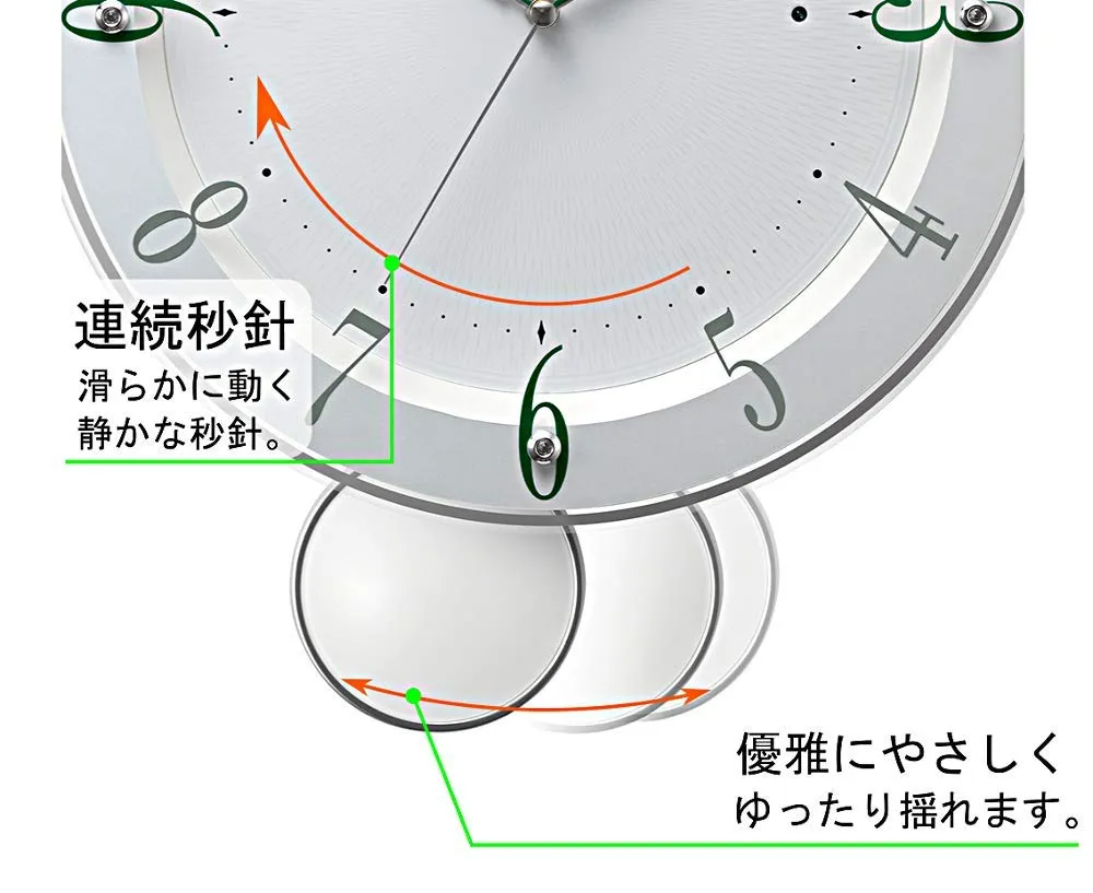 【振り子】ゆったりと動く振り子がお部屋に癒しを与えてくれるます。コンパクトサイズの振り子時計でインテリアに最適です。電池交換お知らせ機能素材・材料:プラスチック