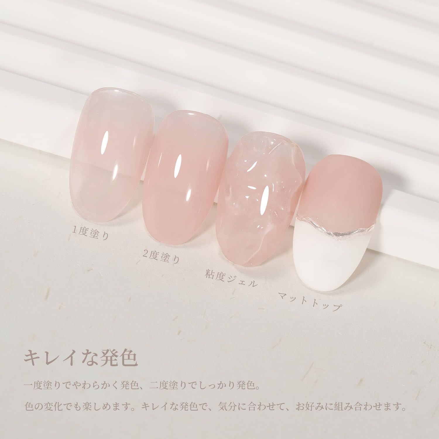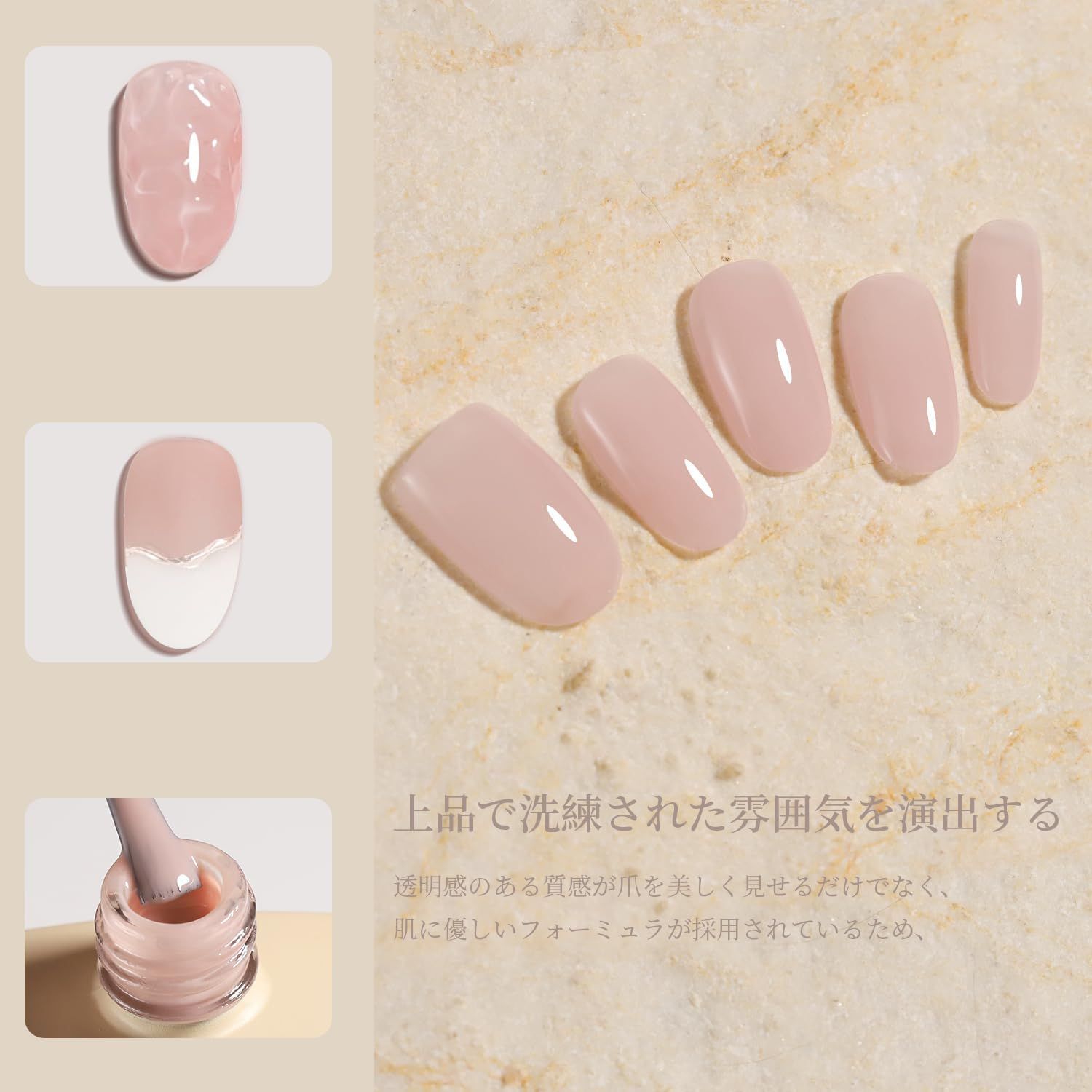 【肌に馴染にやすい】肌に馴染む柔らかいジェル。大人の女性に似合うナチュラルカラーです。オフィスでも日常でも華やかで上品なカラージェルです!