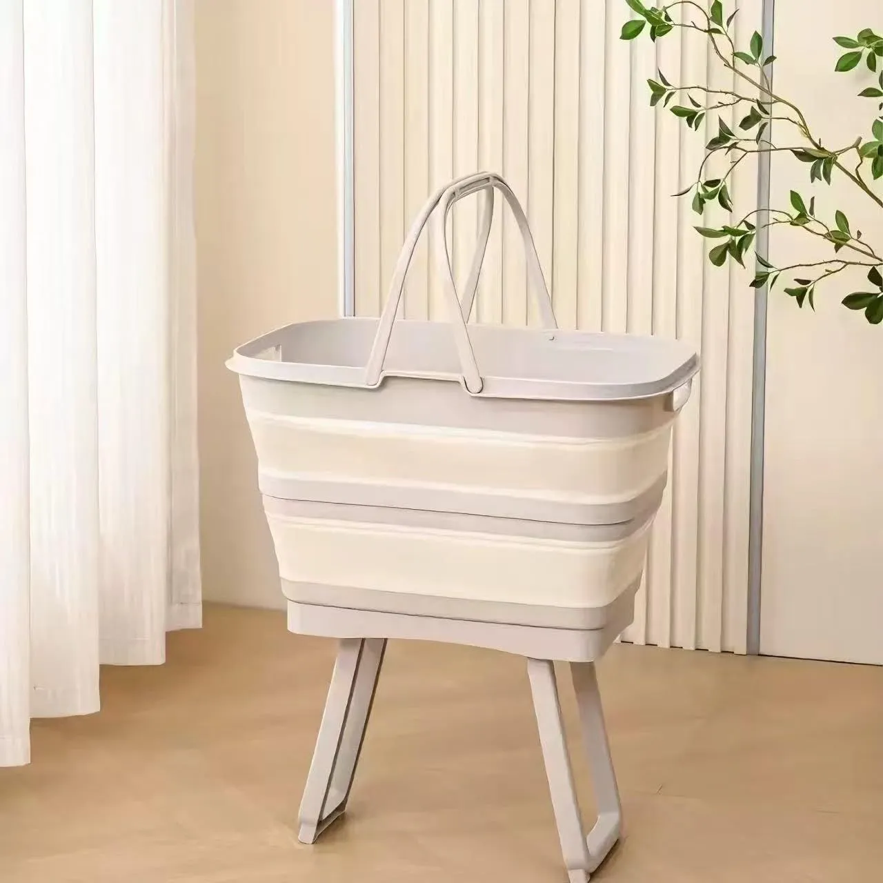 この折りたたみ式洗濯かごは、限られたスペースを有効活用したい方に最適な収納ソリューションです。使用しないときはコンパクトに折りたたんで収納でき、必要なときには自立式の脚を展開して安定した洗濯かごとして使用できます。26Lの容量は日常の洗濯物を十分に収納でき、PP+TPR素材を使用しているため耐久性と柔軟性を兼ね備えています。グレーとホワイトのストライプデザインは、洗濯室やバスルームのインテリアにも馴染みやすく、清潔感のある印象を与えます。持ち手が付いているため、洗濯機への移動も楽々。自立式の脚により、床から離れた位置に洗濯物を保管できるため、取り出しやすく腰への負担も軽減されます。サイズは48×33×50.8cmで、洗濯機の横に置いても邪魔にならないコンパクト設計です。折りたたみ機能により、使わないときは省スペースで保管できるため、一人暮らしの方や収納スペースが限られているご家庭にもおすすめです。