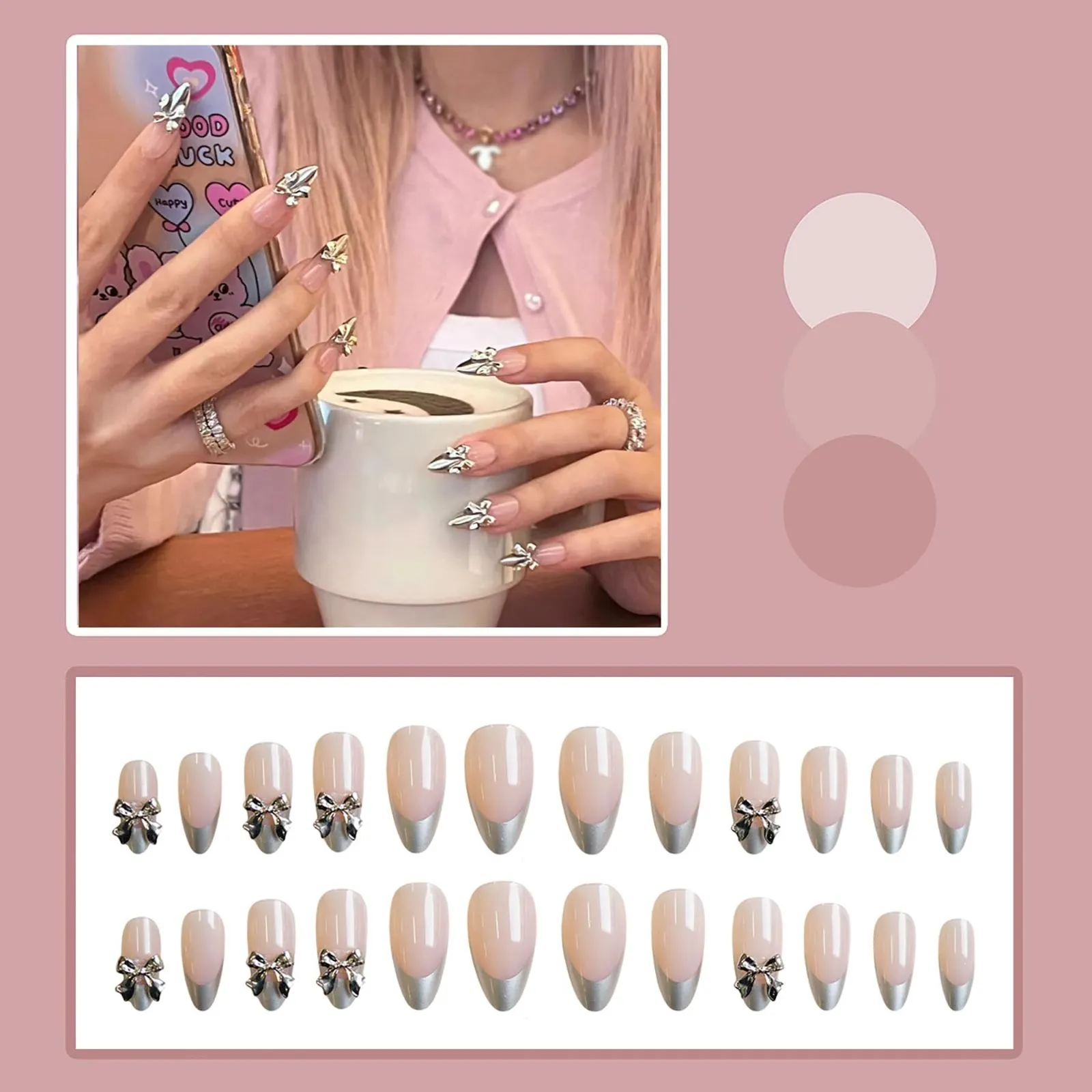 【上品なデザイン】大人可愛いなデザインで女性魅力な印象を与える 長い ネイルチップ。家庭自用だけでなく、成人式、卒業式、結婚式、パーティー、オフィス、通勤、出張、デート、海外旅行、同窓会、二次会などの様々な場合に最適です。
