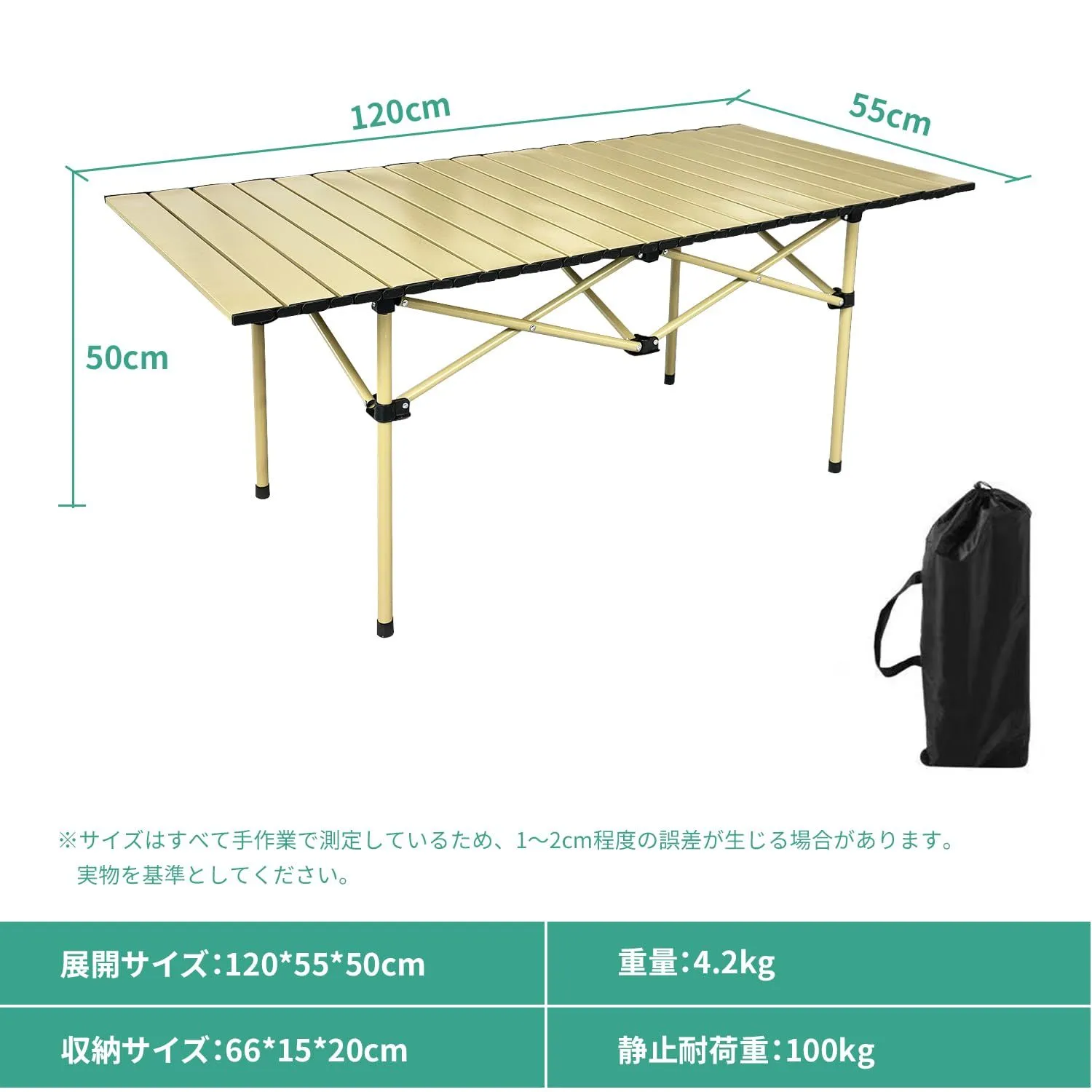 このアウトドア 折りたたみ テーブルは、100kgまで耐えられるタフ設計。家族キャンプ、BBQ、ピクニック、イベントなど、どんなシーンにも対応します。