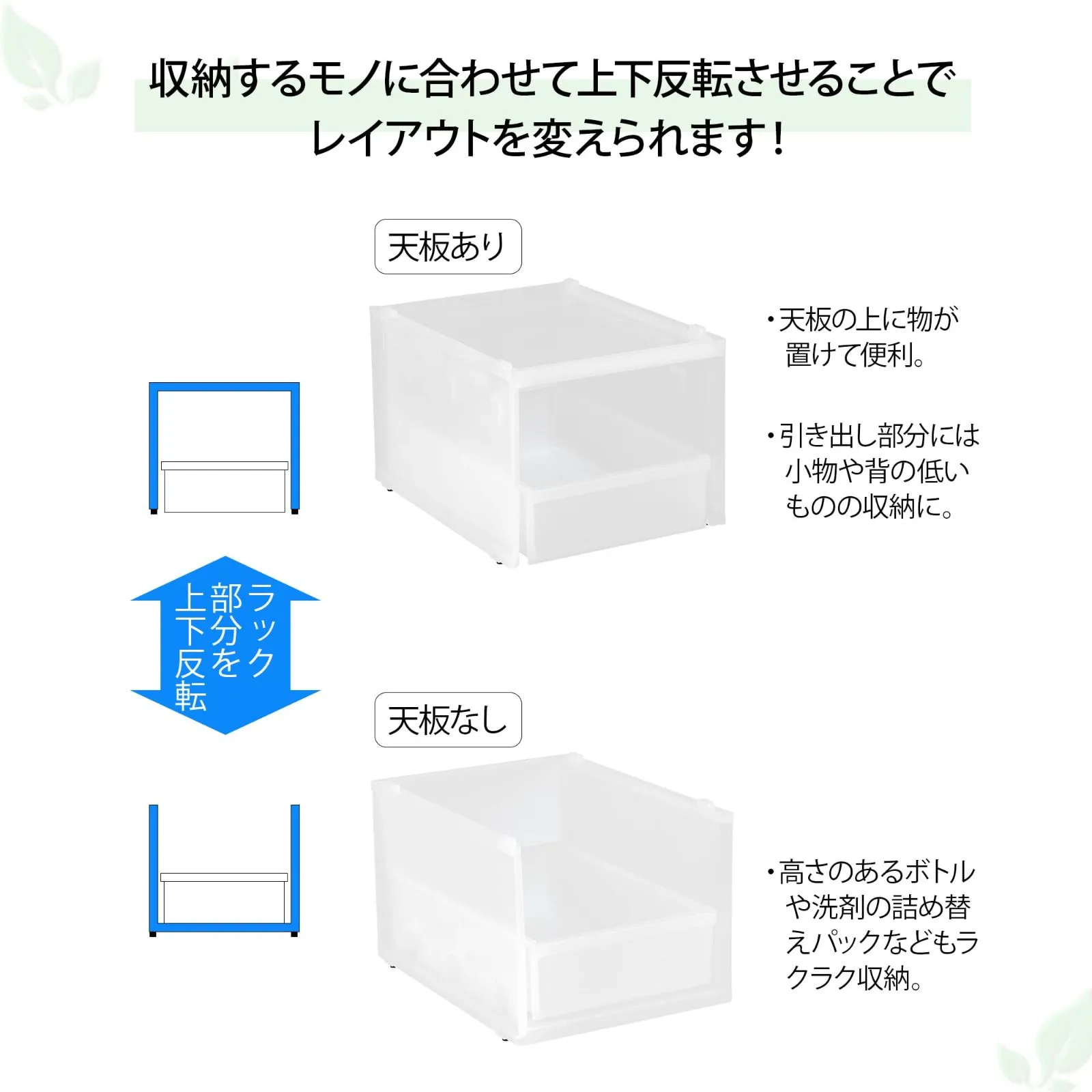 収納するモノに合わせて上下反転も可。様々に組み合わせて「ちょうどいい収納」をカスタマイズ。