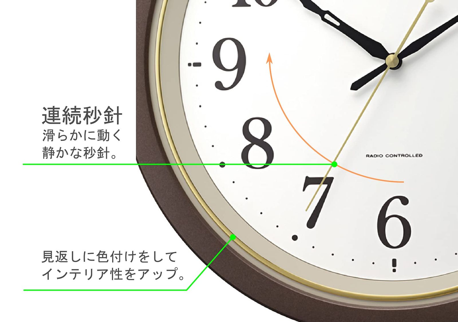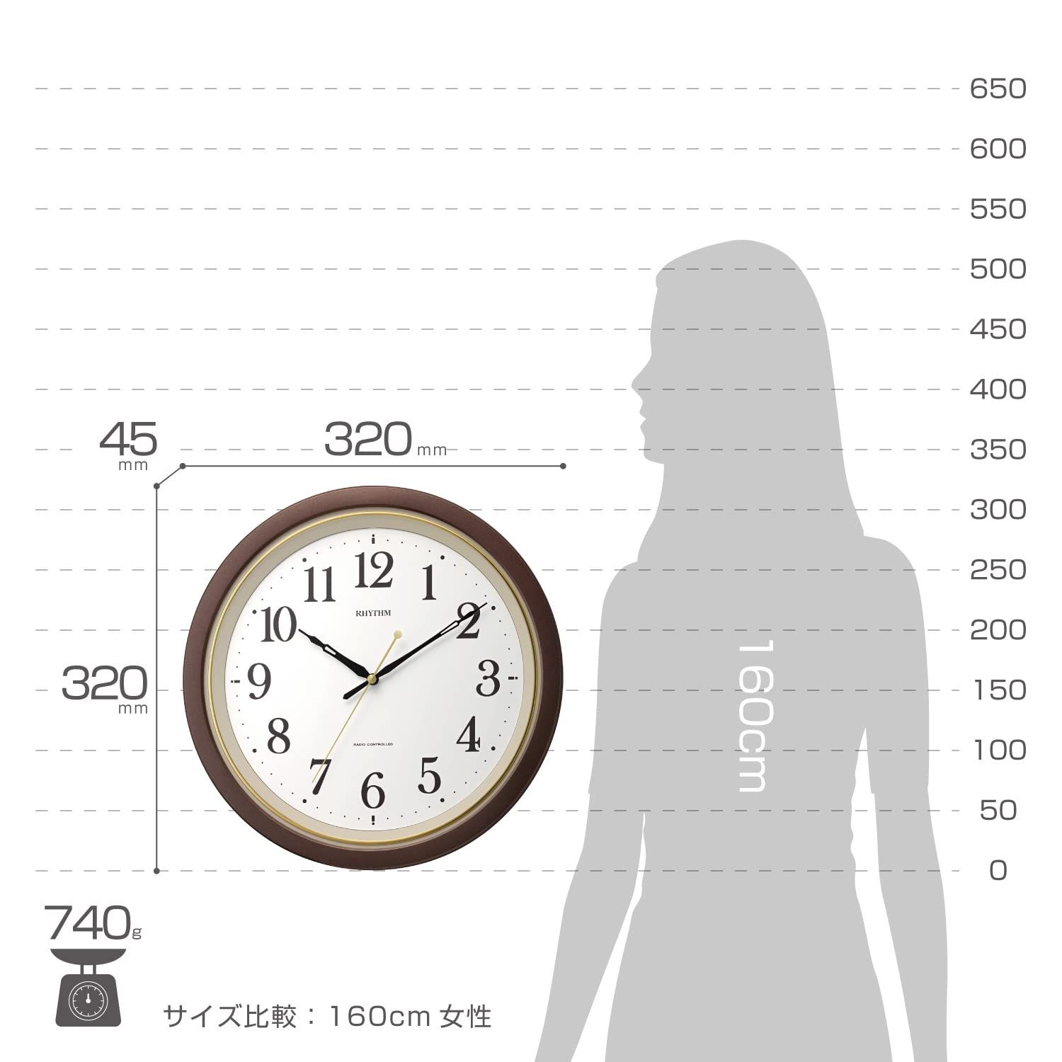 リズム(RHYTHM) 掛け時計 電波時計 静かな 連続秒針 茶 M564 Φ32x4.5cm 8MY564SR06 ブラウン [ブラウン] [320X320X45mm]