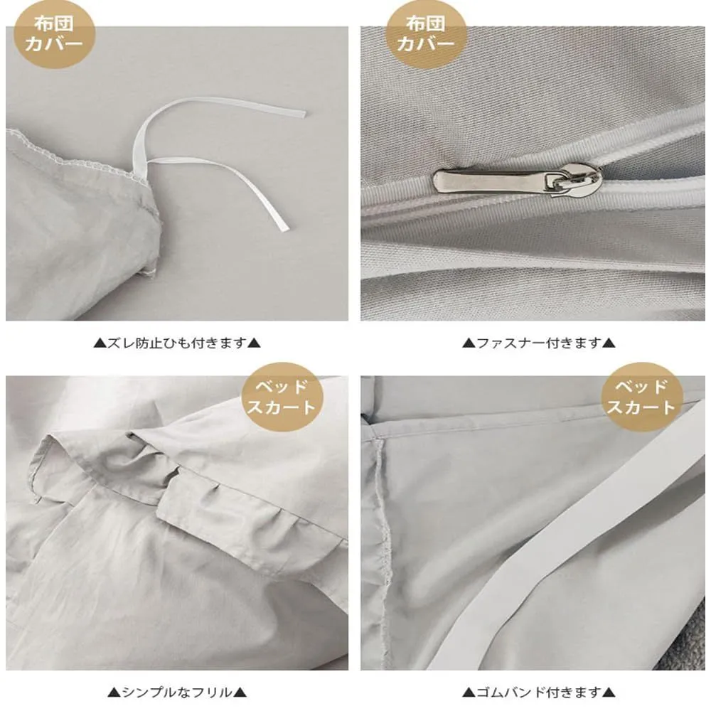 【シングル3点セット】 布団カバー:150×210cm ベッドスカート:105×210cm+45cm(マチ) 枕カバー:46×63cm×1枚