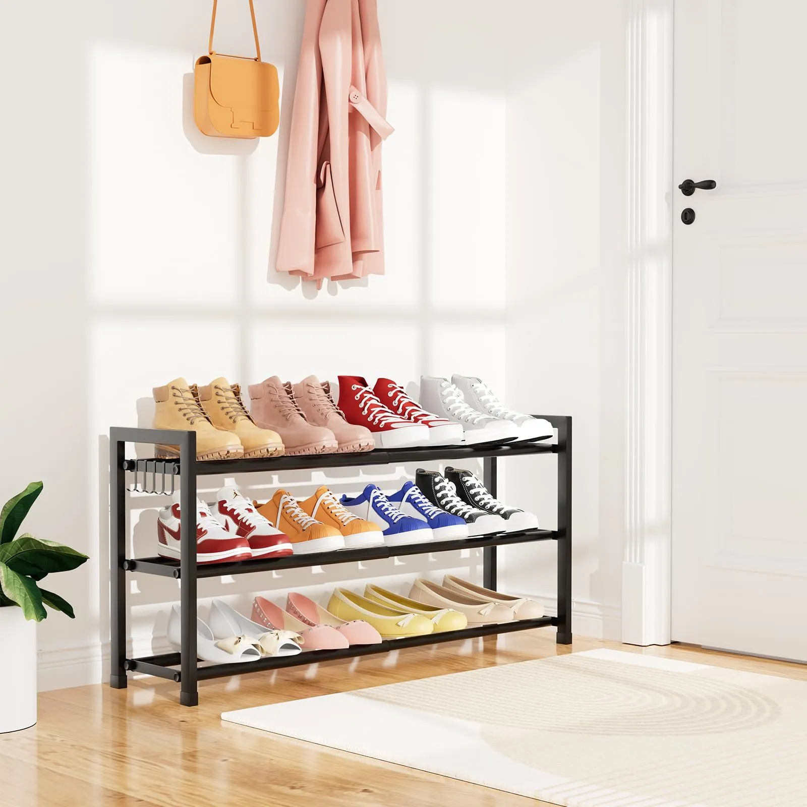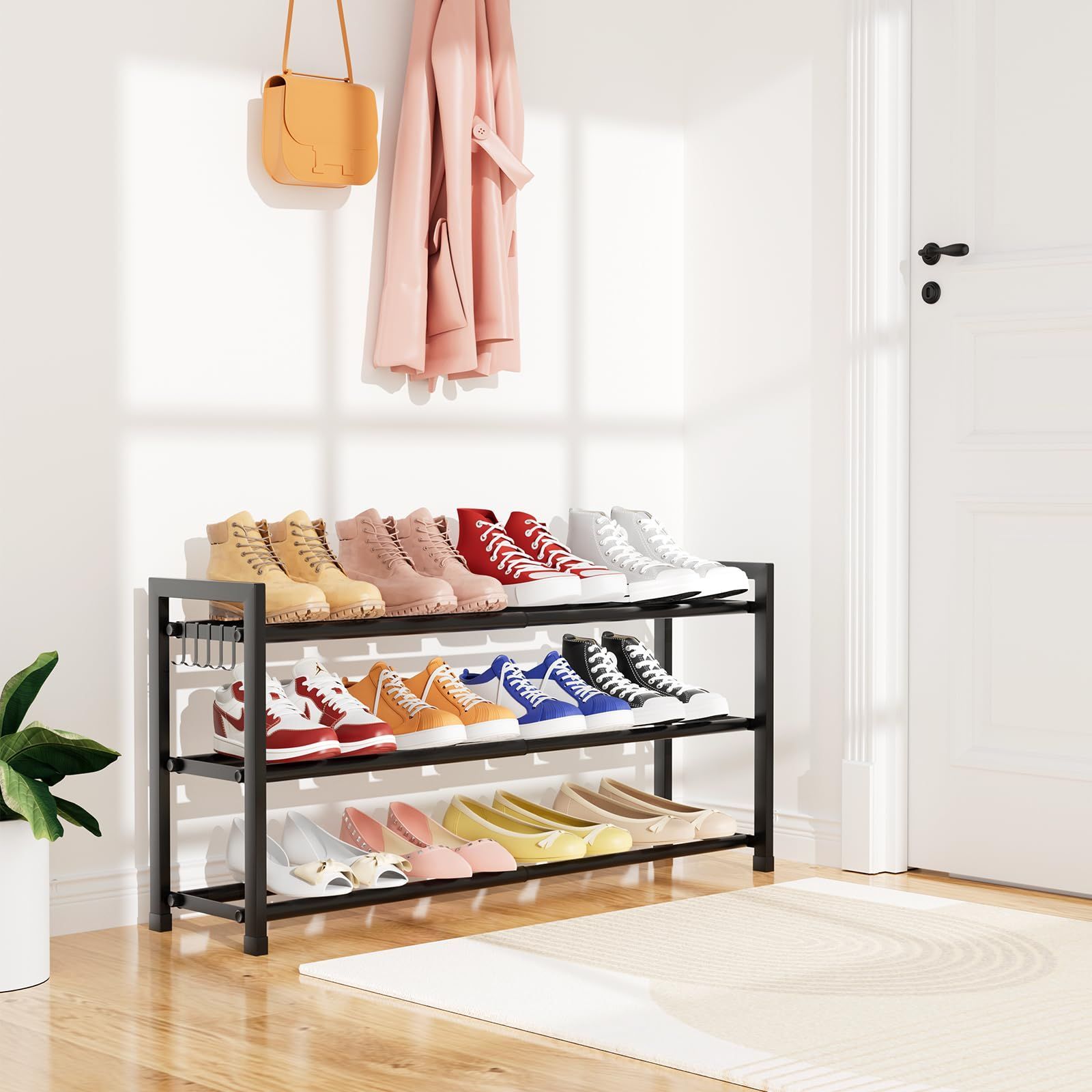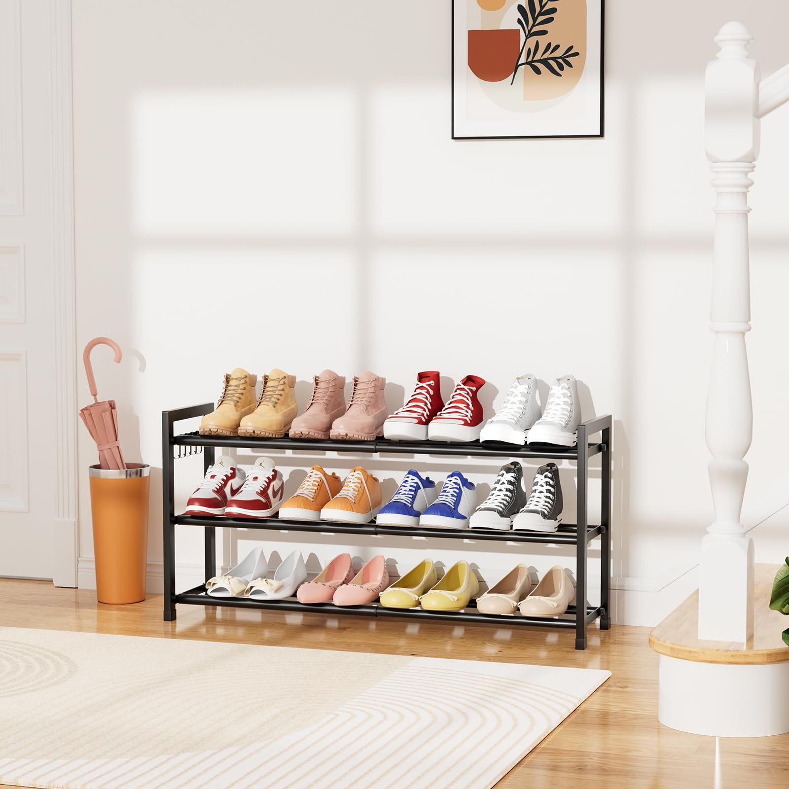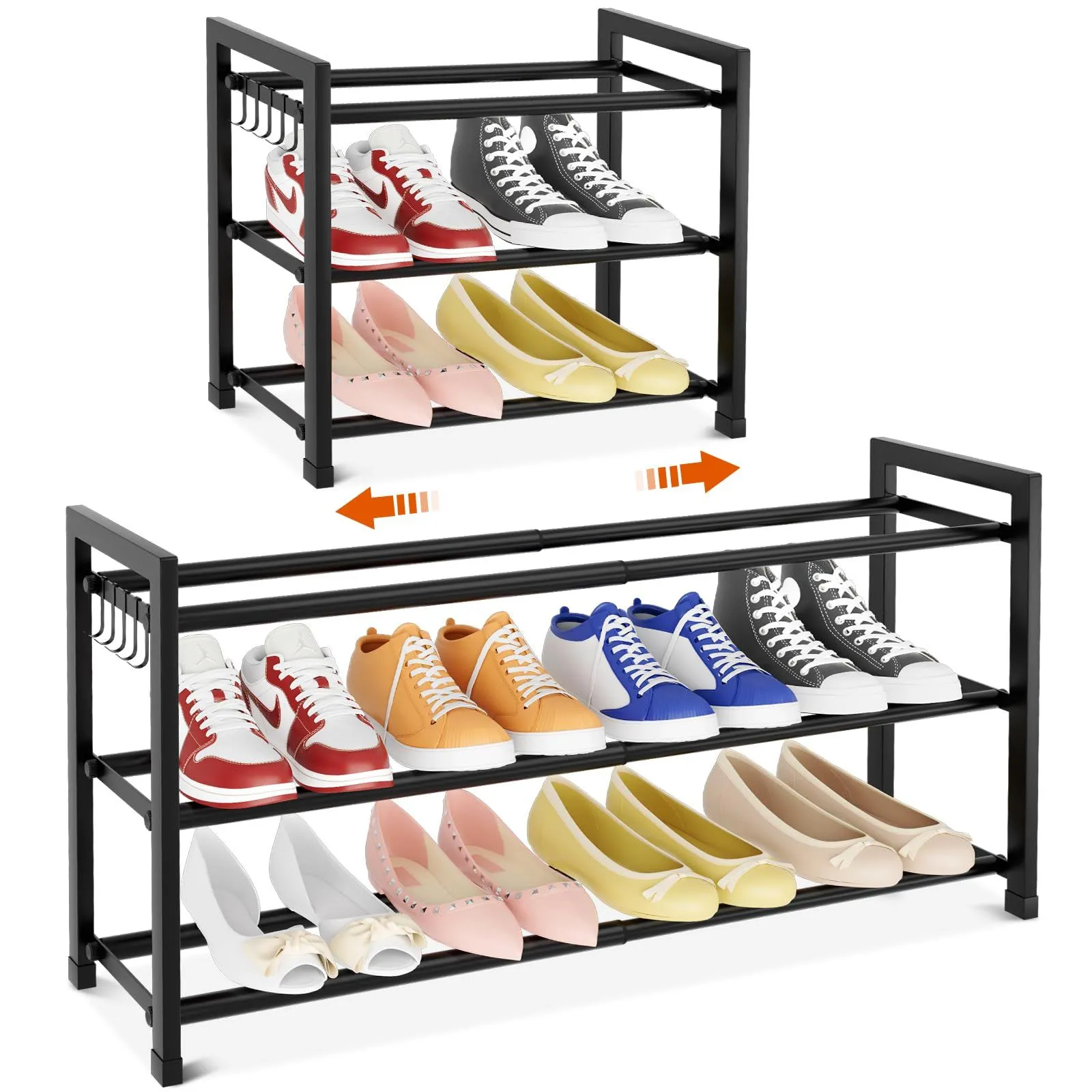 シューズラックスリム 3段 伸縮式シューズラック 47cm~83.5cm 幅調節可能 シューズラック 省スペース フリースタンディングシューズラック 金属製フレーム 靴棚オーガナイザー 玄関 クローゼット 寝室用 ブラック