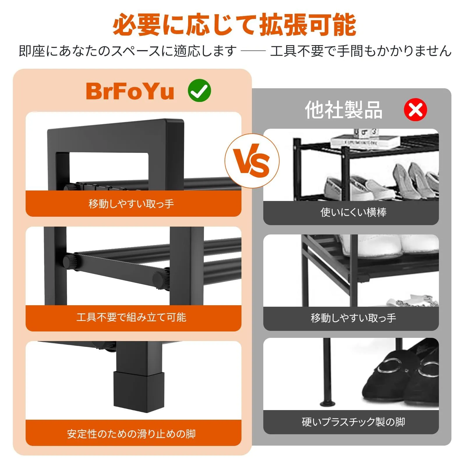 安心のサービス:BrFoYu 3段省スペースシューズラックだけでなく、当社のプロフェッショナルサービスもご購入いただけます。製品のインストールについては、詳細ページのビデオを参照することをお勧めします。この製品についてご質問がある場合は、お気軽にお問い合わせください。いつでもお手伝いいたします。