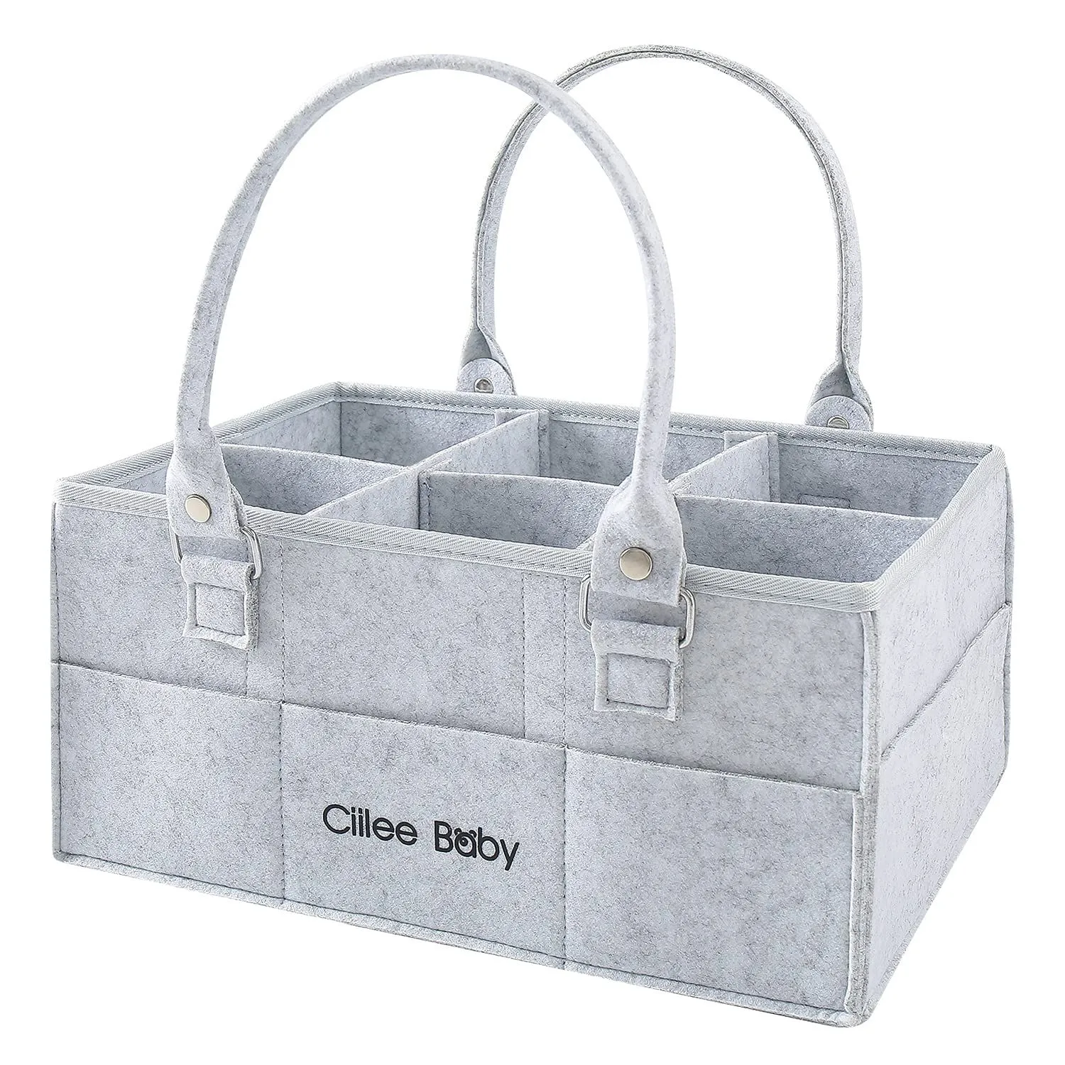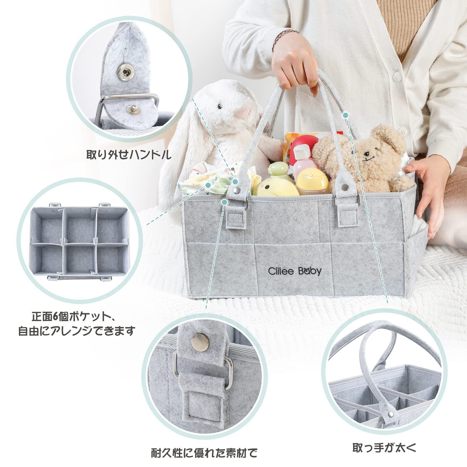 Ciilee Baby おむつストッカー オムツバッグ 大容量 取り外せハンドル オムツケース 折りたたみ ベビー 収納ボックス カゴ 車載旅行用バック 収納カコ 小物入れ 軽便 ベビー用品 育児用品入れ (仕切り6つ(灰))