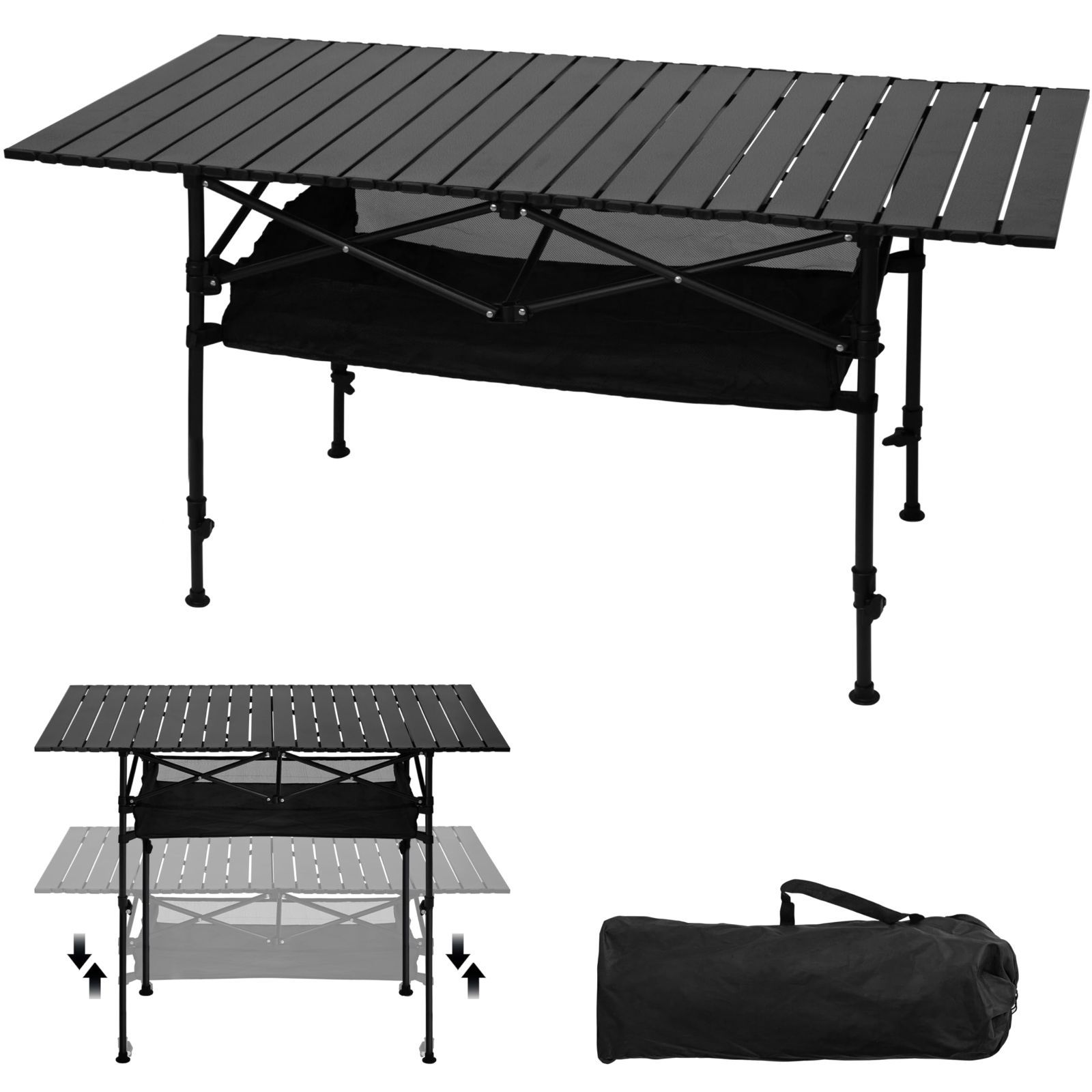 Ytmshisan軽量 耐荷重80kg 折り畳み式アウトドアテーブル 高さ調節(50-80cm) 3.9kg 4-6人用 防水加工 収納袋付 キャンプ・バーベキュー・ピクニック用 (ブラック)