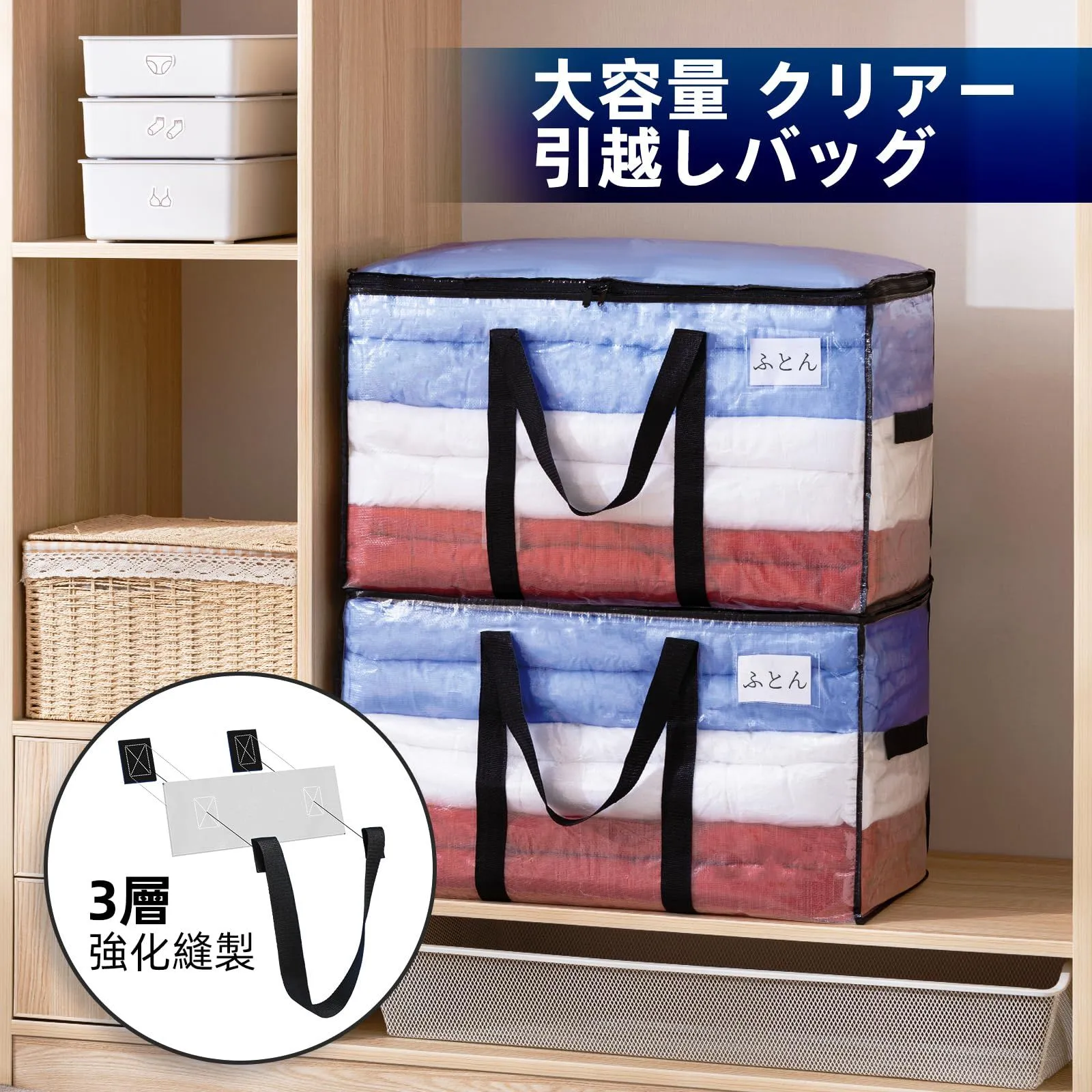 TAILI 大きいバッグ 布団収納袋 引越しバッグ 収納ケース 特大容量 透明窓 持ち手付き 衣装ケース 洋服 羽毛布団 防塵防水 折りたたみ式 カバン 省スペース 引っ越し 背負える キャンプ 旅行 耐荷重 透明 4個セット 100L