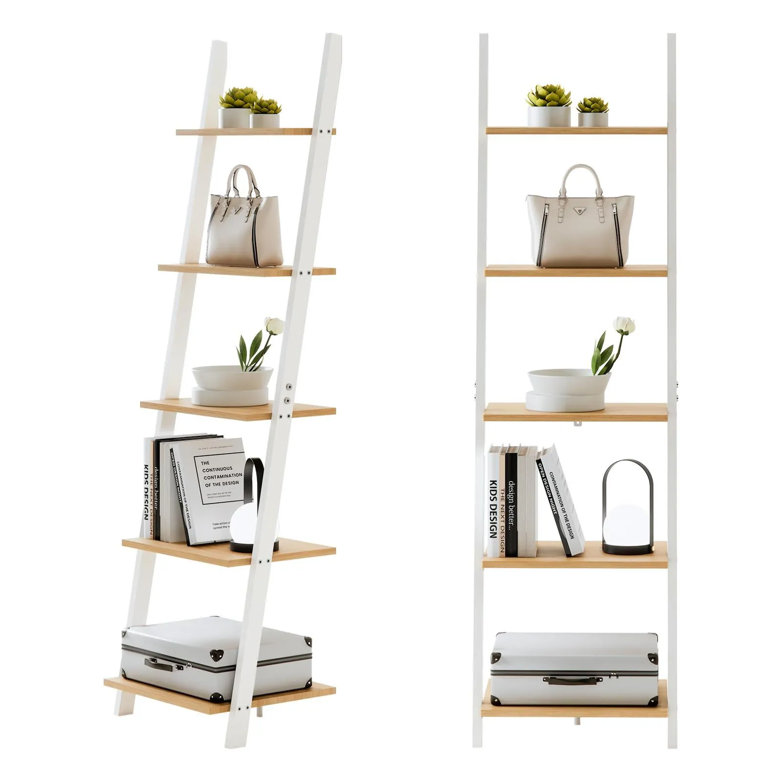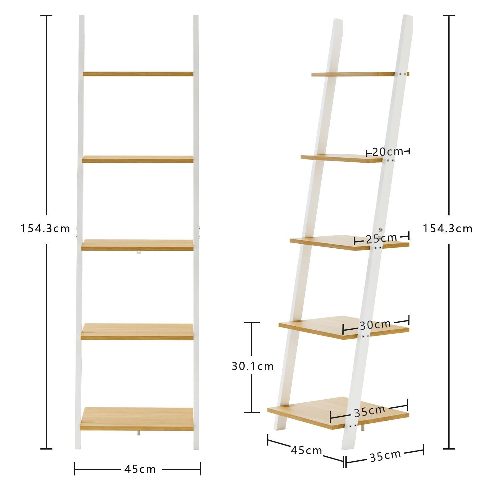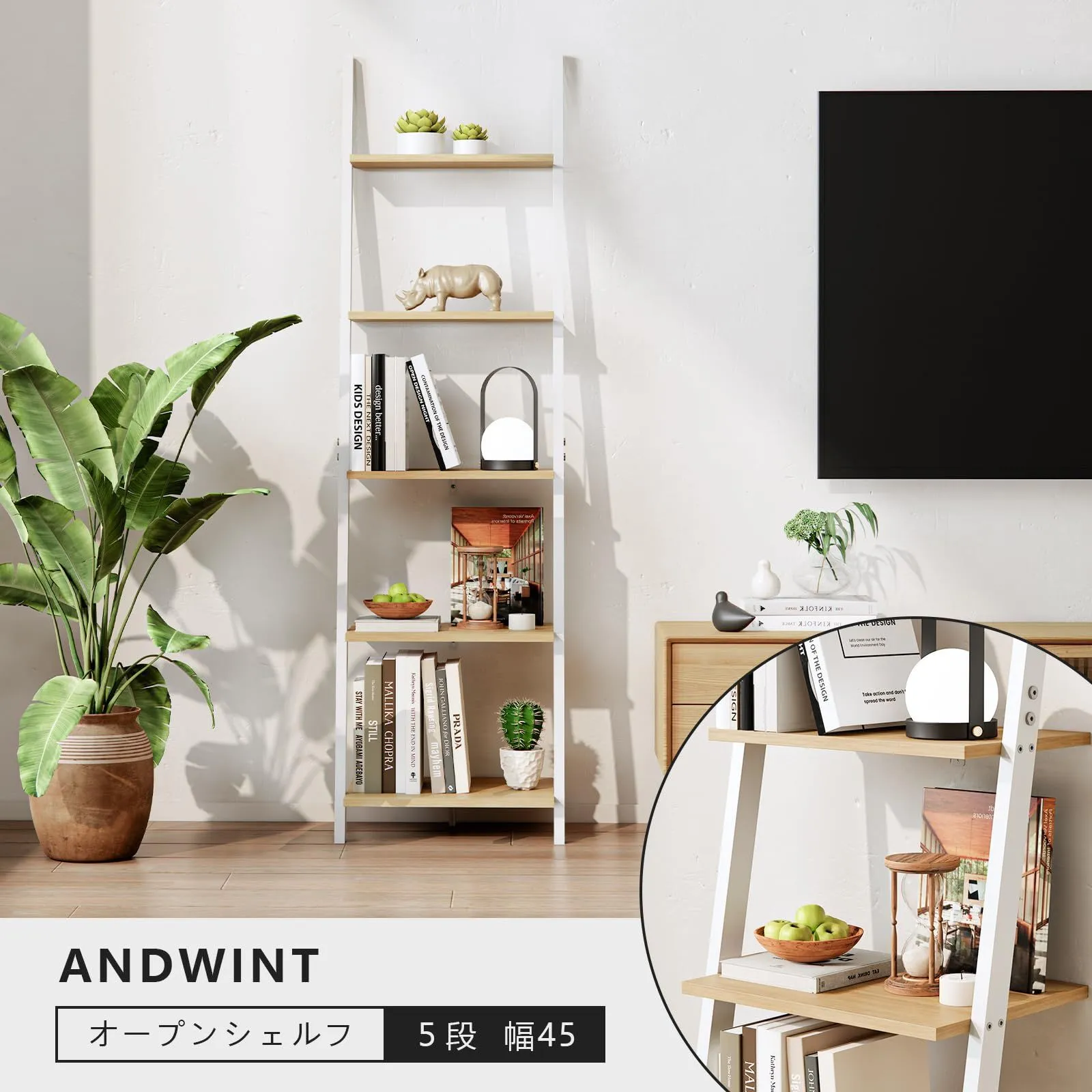 ANDWINT オープンラック 棚ラック木製 5段シェルフ おしゃれ 本棚スリム 飾り棚 壁面収納 北欧スタイル ホワイト 収納棚 玄関 リビングルーム 木目幅45×奥行35×高さ154.3cm オーク