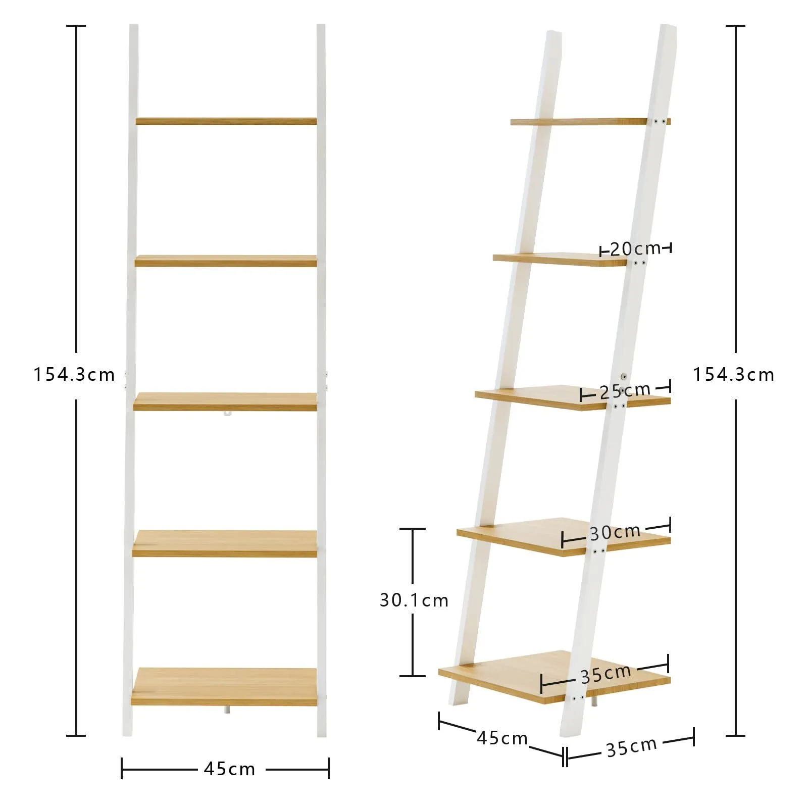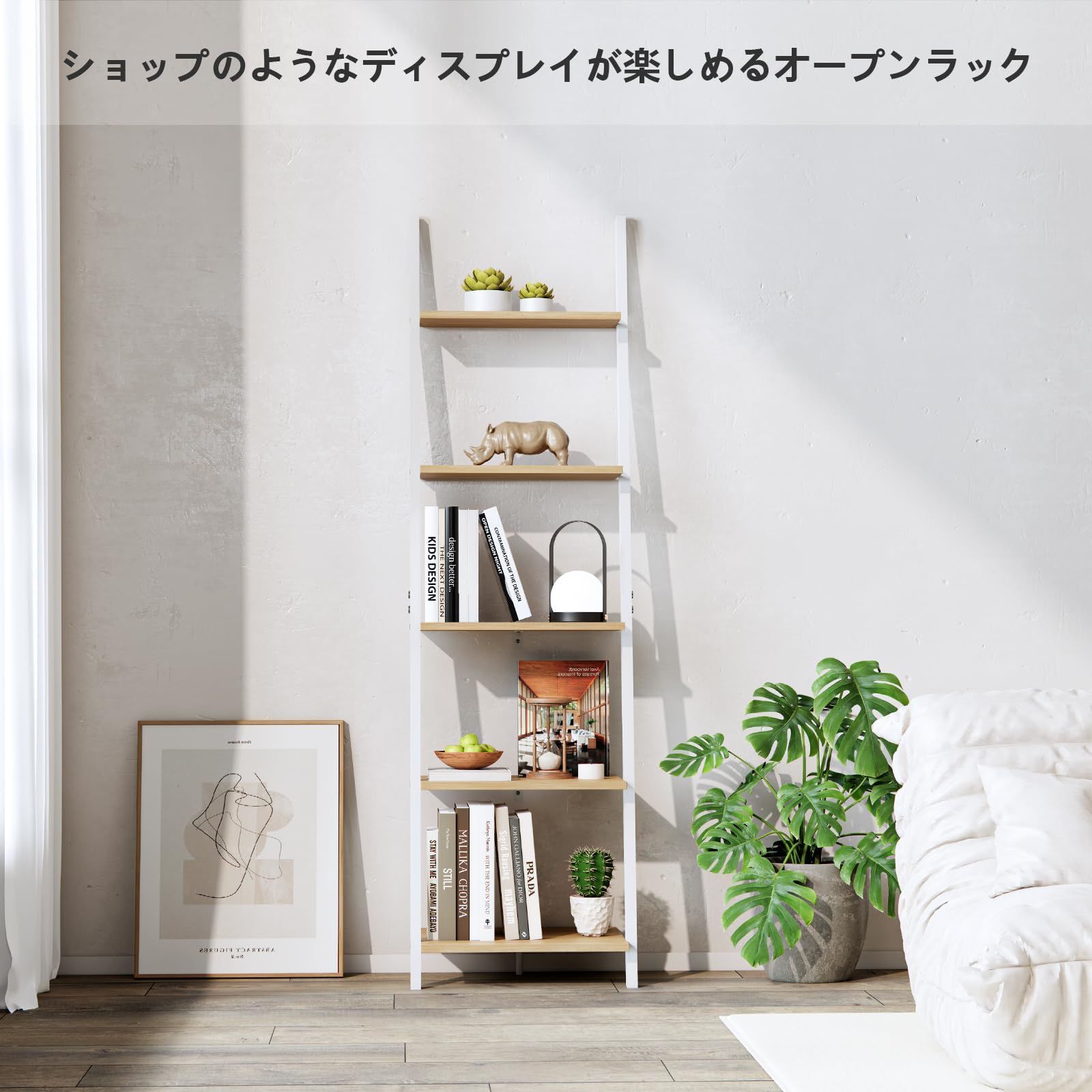 オープンラック 棚ラック木製 5段シェルフ おしゃれ 本棚スリム 飾り棚 壁面収納 北欧スタイル ホワイト 収納棚 玄関 リビングルーム 木目幅45×奥行35×高さ154.3cm オーク