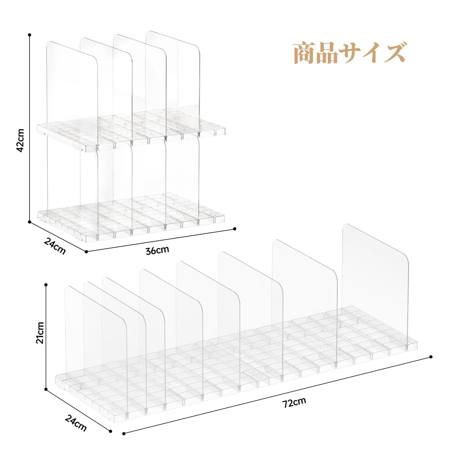 バッグ収納スタンド 2個セット 間隔調節可能 4仕切り 台座連結・積み重ね可能 簡単組み立て 透明 クローゼット カバン収納 約幅36x奥行24x高さ21cm クリア