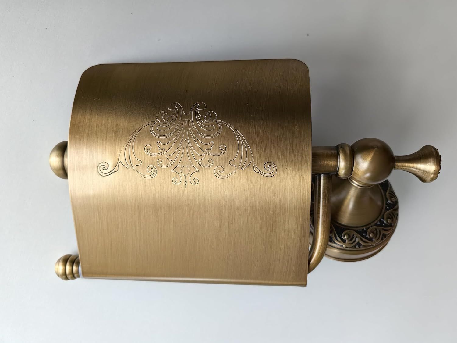 アンティーク調でおしゃれなトイレットペーパーホルダーです。 壁掛けタイプです。(ネジ、六角スパナ付き) シンプルで壁紙を選ばない落ち着いたデザインでDIYやリノベーションに!