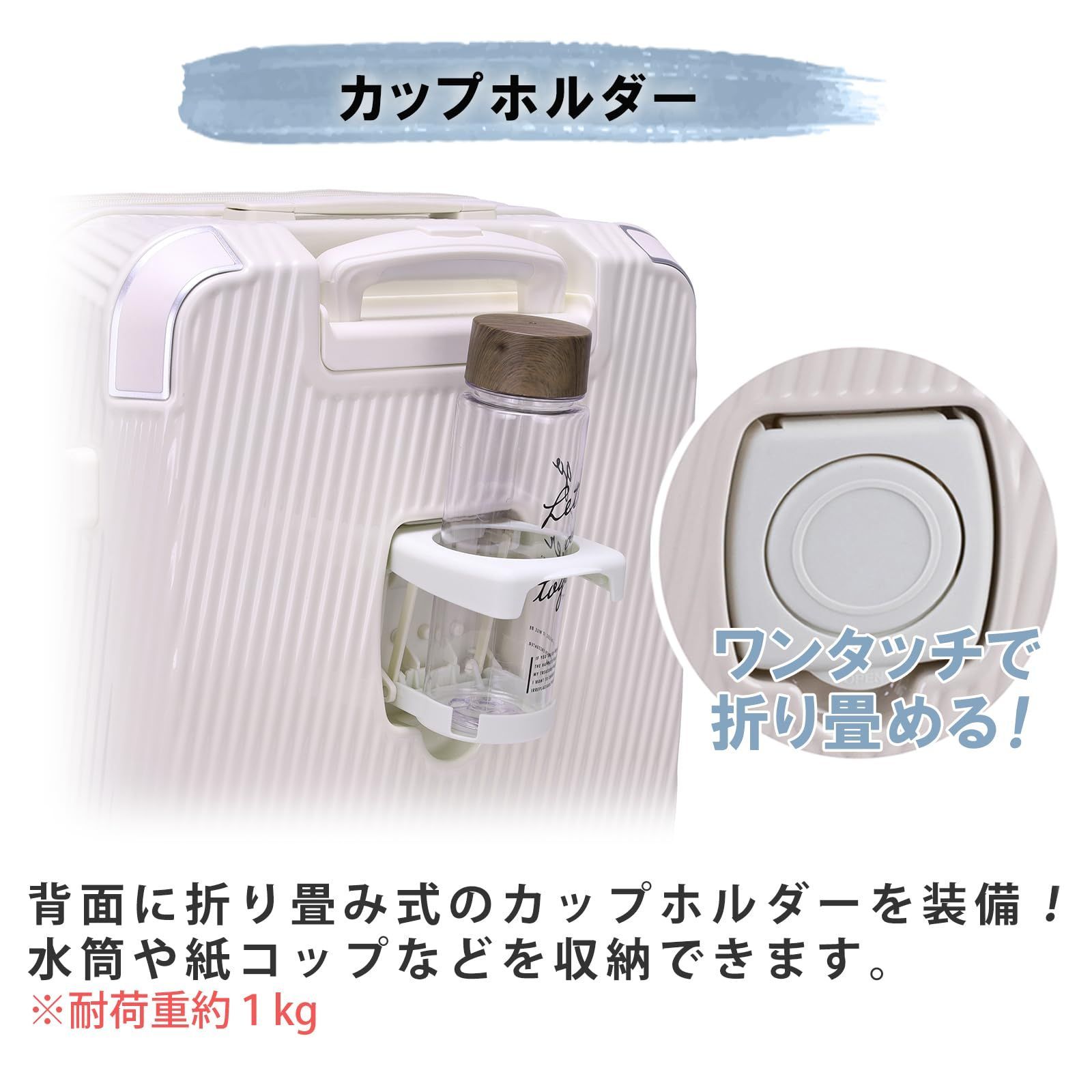 ?ドリンクホルダー 背面のホルダーを開くとドリンクホルダーとしてご利用いただけます。 ※耐荷重1kg以上の荷重を掛けないでください。
