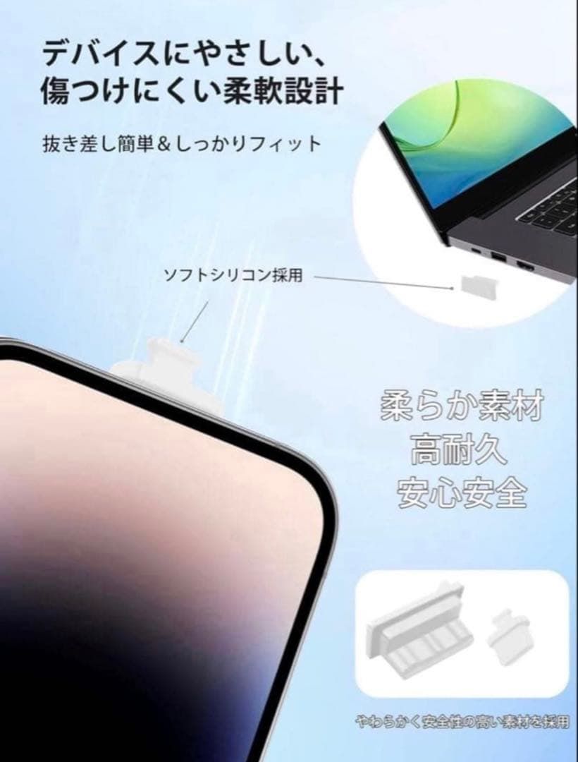 【白色 20個セット】USB 防塵キャップ & USB-C カバー 柔軟シリコン製 スマホ/ノートPC/タブレット対応 精密保護 防塵防滴 高耐久 収納ケース付き ブラック T4863 $$380
